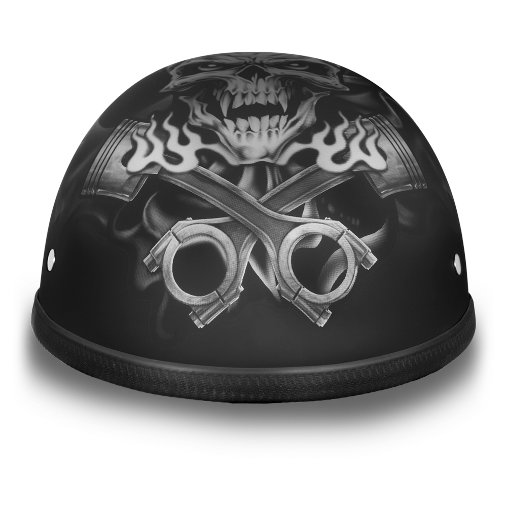 Our Premium Classic Eagle Novelty Item With Pistons Skull Graphic Does Not Meet D.O.T. Standards. The Eagle Novelty Item With Pistons Skull Graphic Is Fully Lined With A Custom Formed Interior For X-treme Comfort. Each Graphic Item Is Custom Designed And May Vary In Color Or Composition. This Eagle Graphic Novelty Item Has A Soft Touch Dull Black Finish, Available Without Snaps/Visor Only. Free Head Wrap And Cloth Draw String Bag Included.