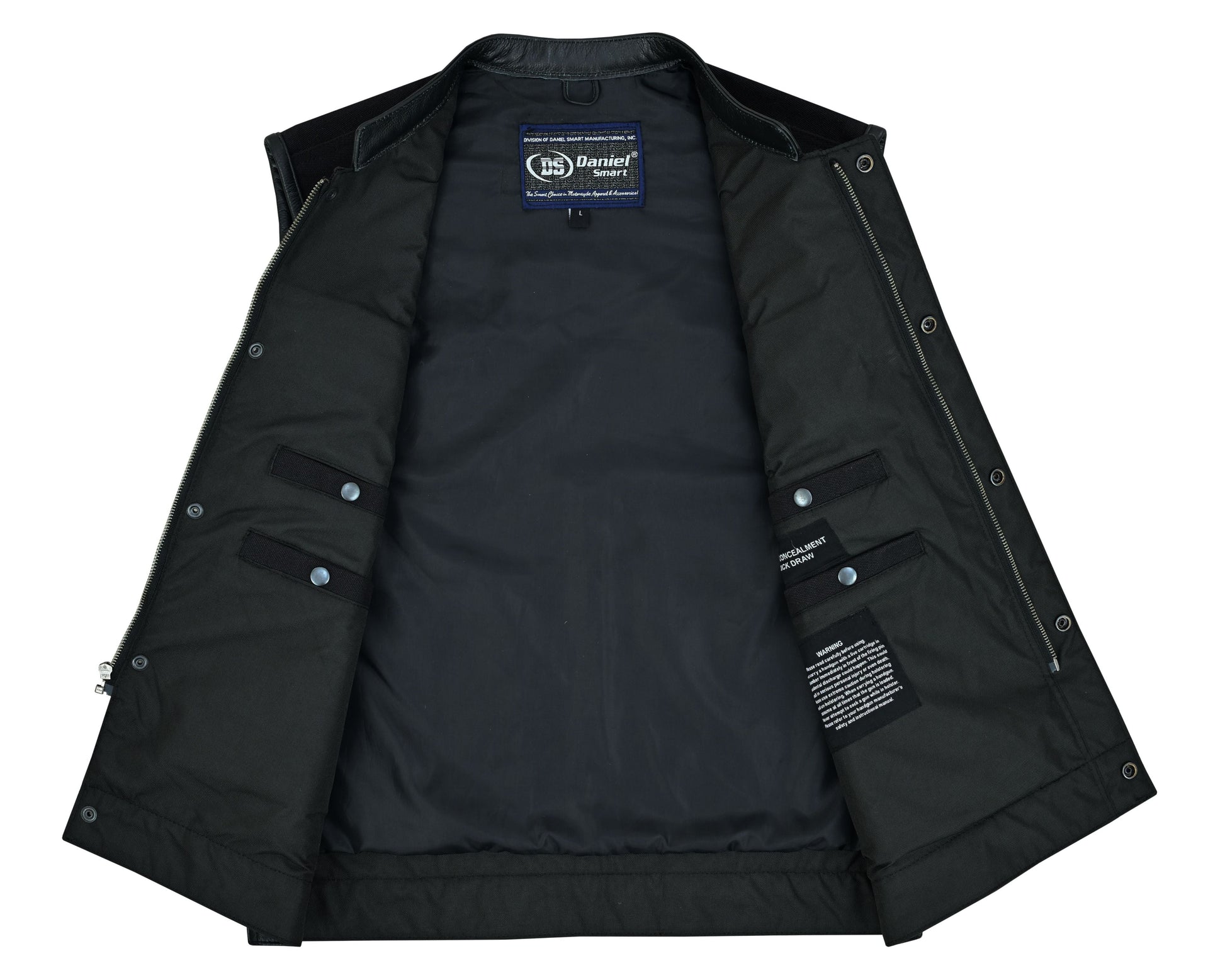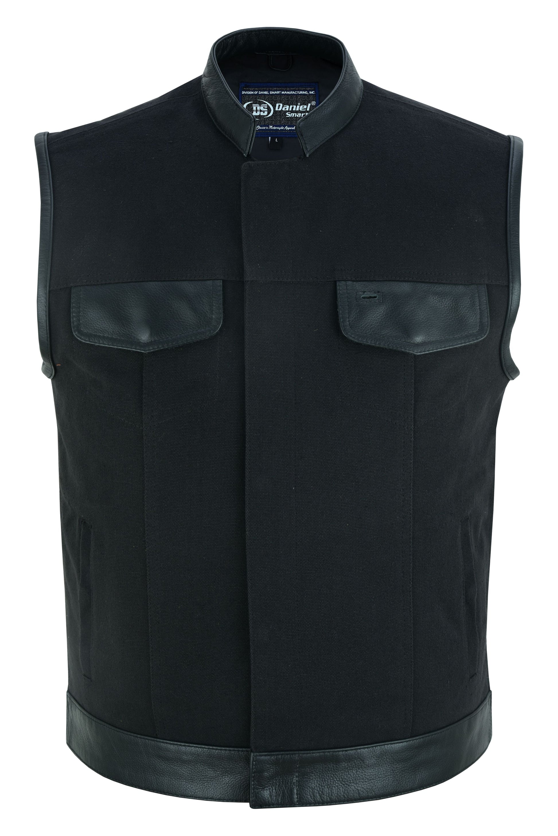 Canvas Material Single Back Panel Concealment Vest W/Leather Tr