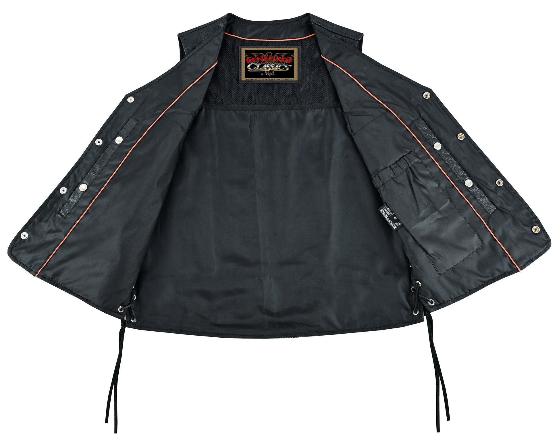 Charlie Men's Black Braided Leather Motorcycle Vest & Lace-Up Sides