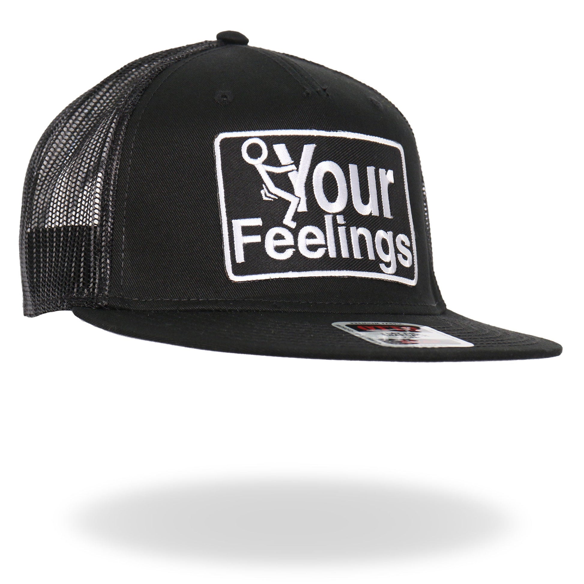 This hat features a black and white patch reading "F Your Feelings".