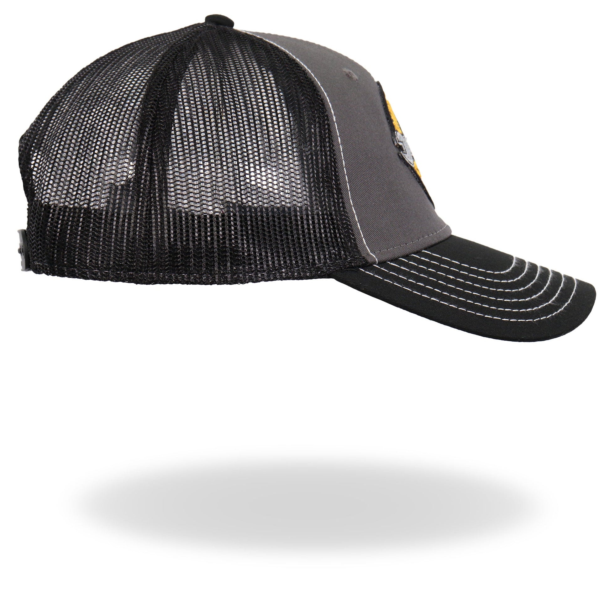 Hot Leathers® snap back trucker hats are made from high quality 5 panel construction. Each one is adjustable with a plastic snap closure and a curved bill featuring an original Hot Leathers® patch that will help you stand out!