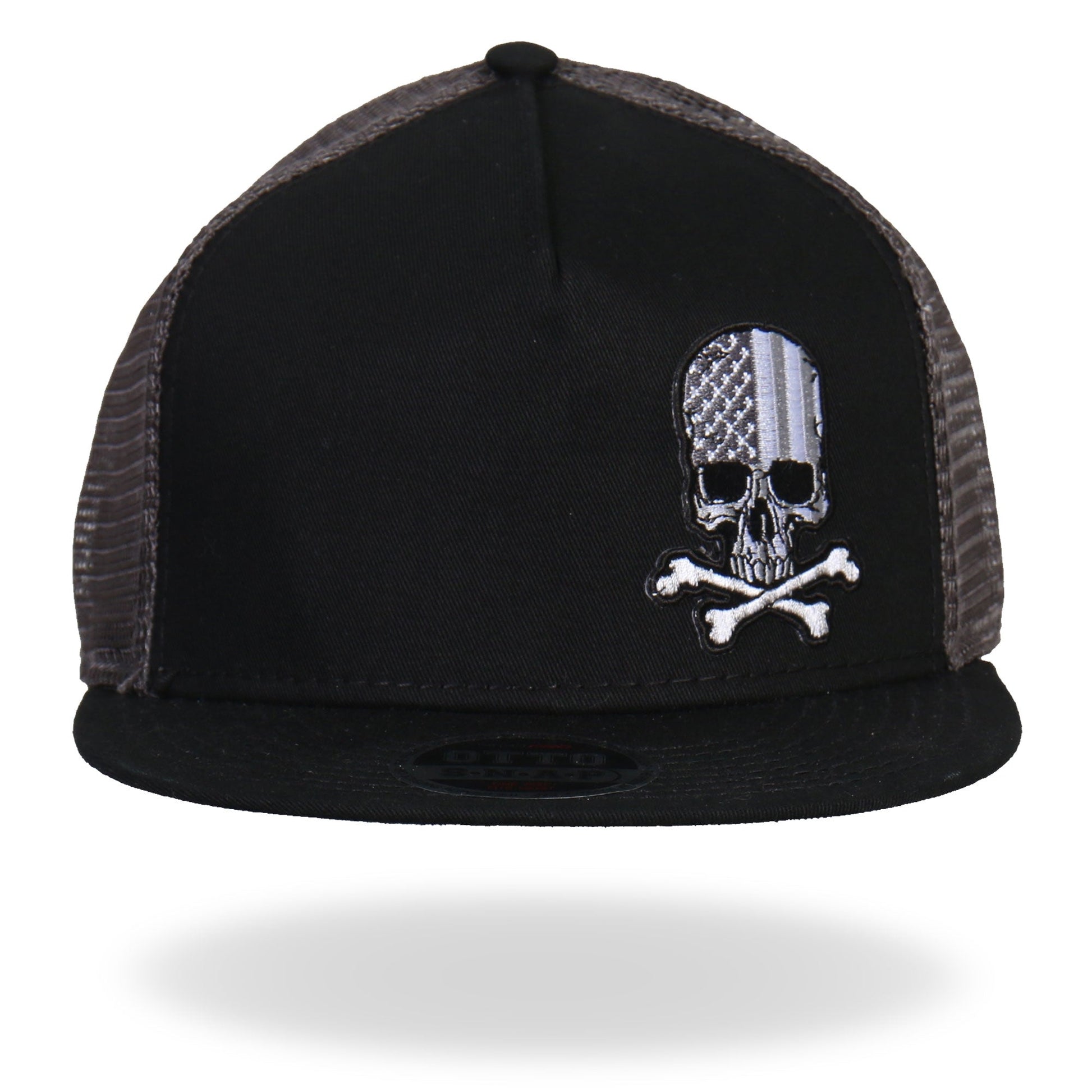 Hot Leathers GSH2004 Flag Skull Snap Back Ball Hat