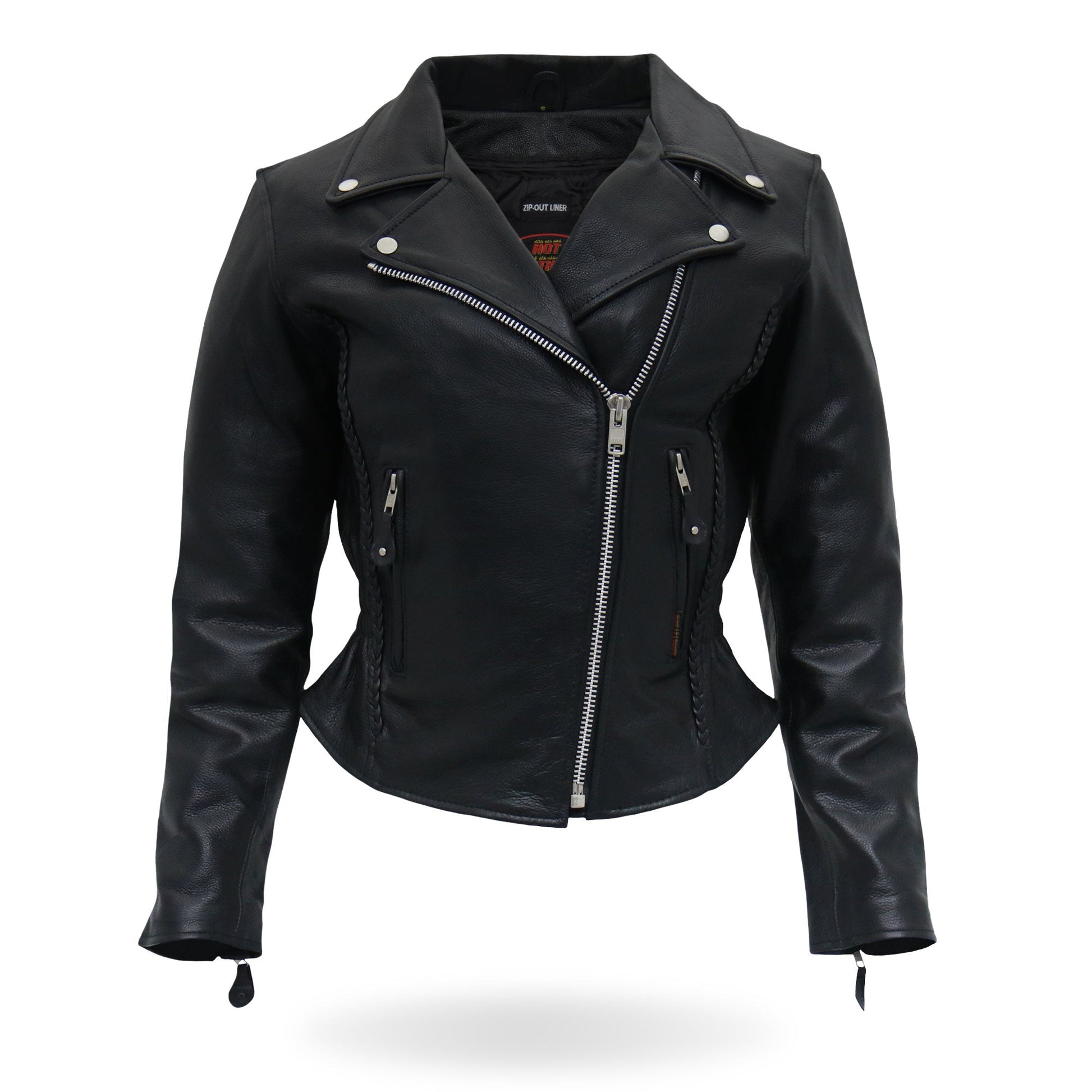 Hot Leathers JKL1009 Ladies Braided Motorcycle Leather Biker Jacket