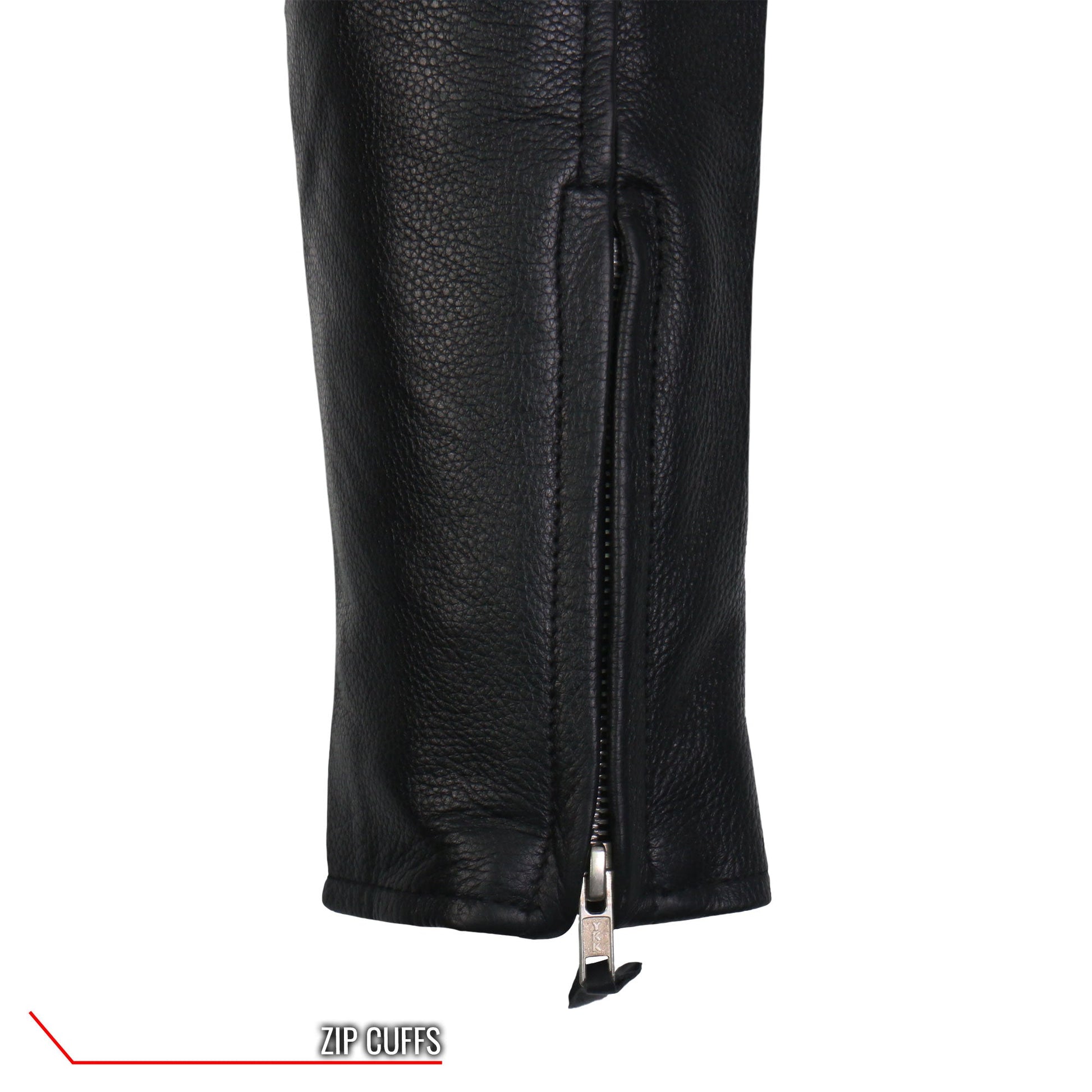 This leather jacket comes with a 90 day warranty. *Free ground shipping on ALL leather motorcycle jackets.