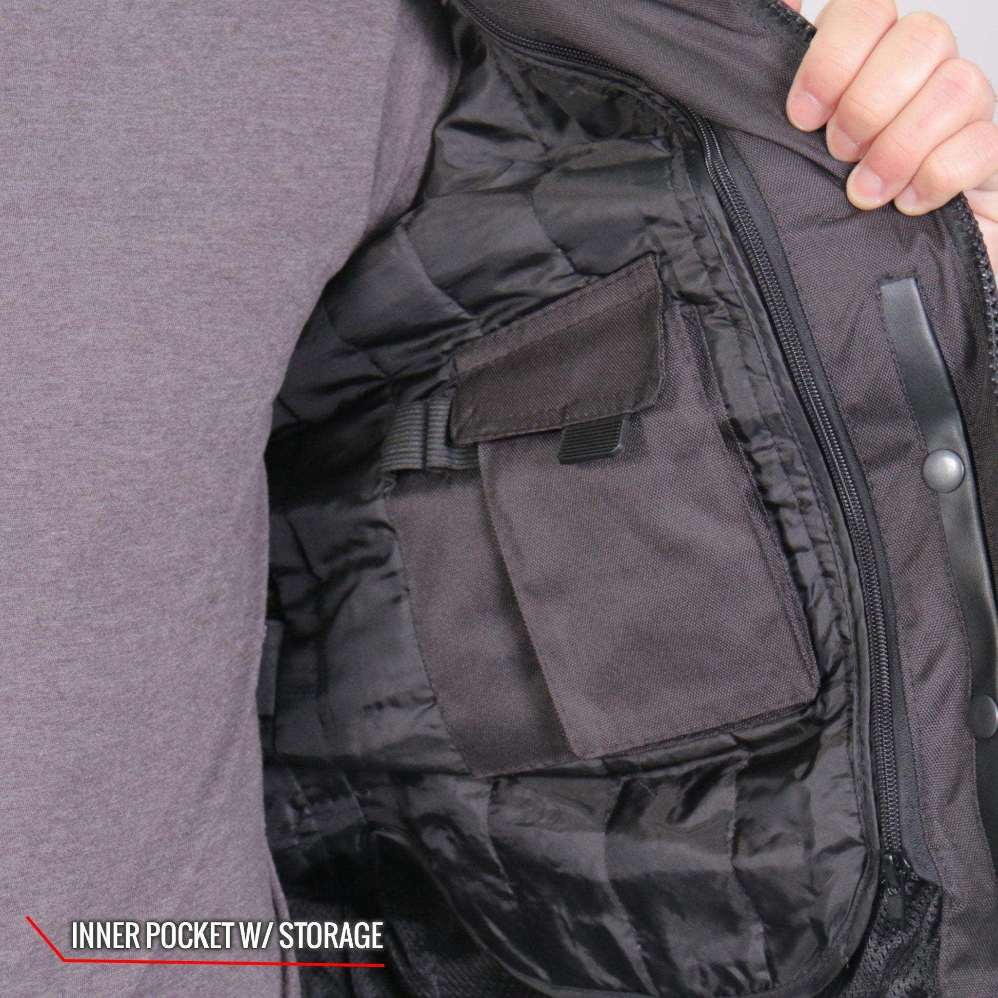 Hot Leathers JKM1023 Men’s Black Biker High Visibility Nylon Motorcycle Jacket with Concealed Carry Pocket