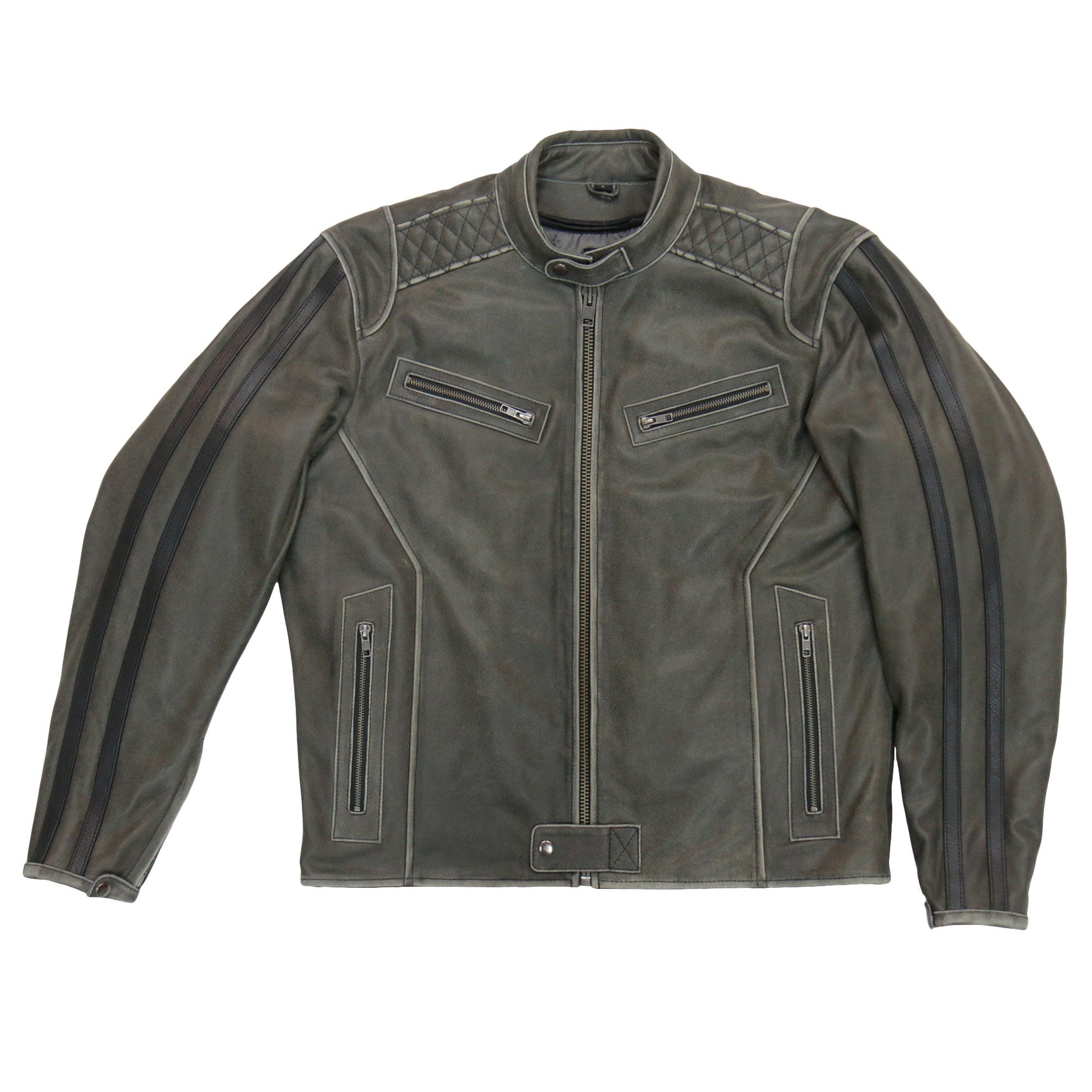 Hot Leathers JKM1033 Men’s Distress Grey ‘Café Racer' Biker Leather Motorcycle Jacket with Concealed Carry Pockets