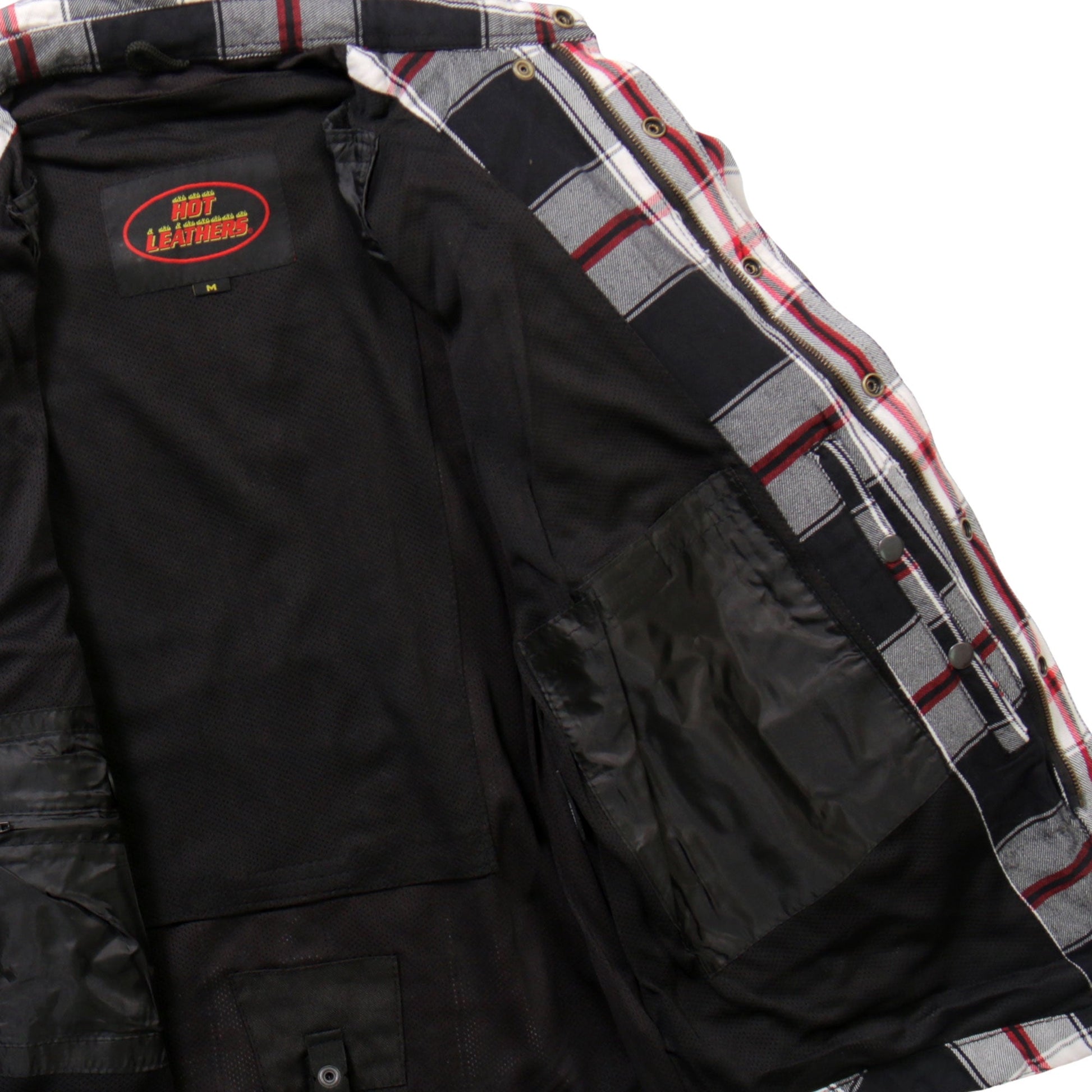 Hot Leathers JKM3001 Men's Motorcycle Red and White Armored Flannel Biker Jacket