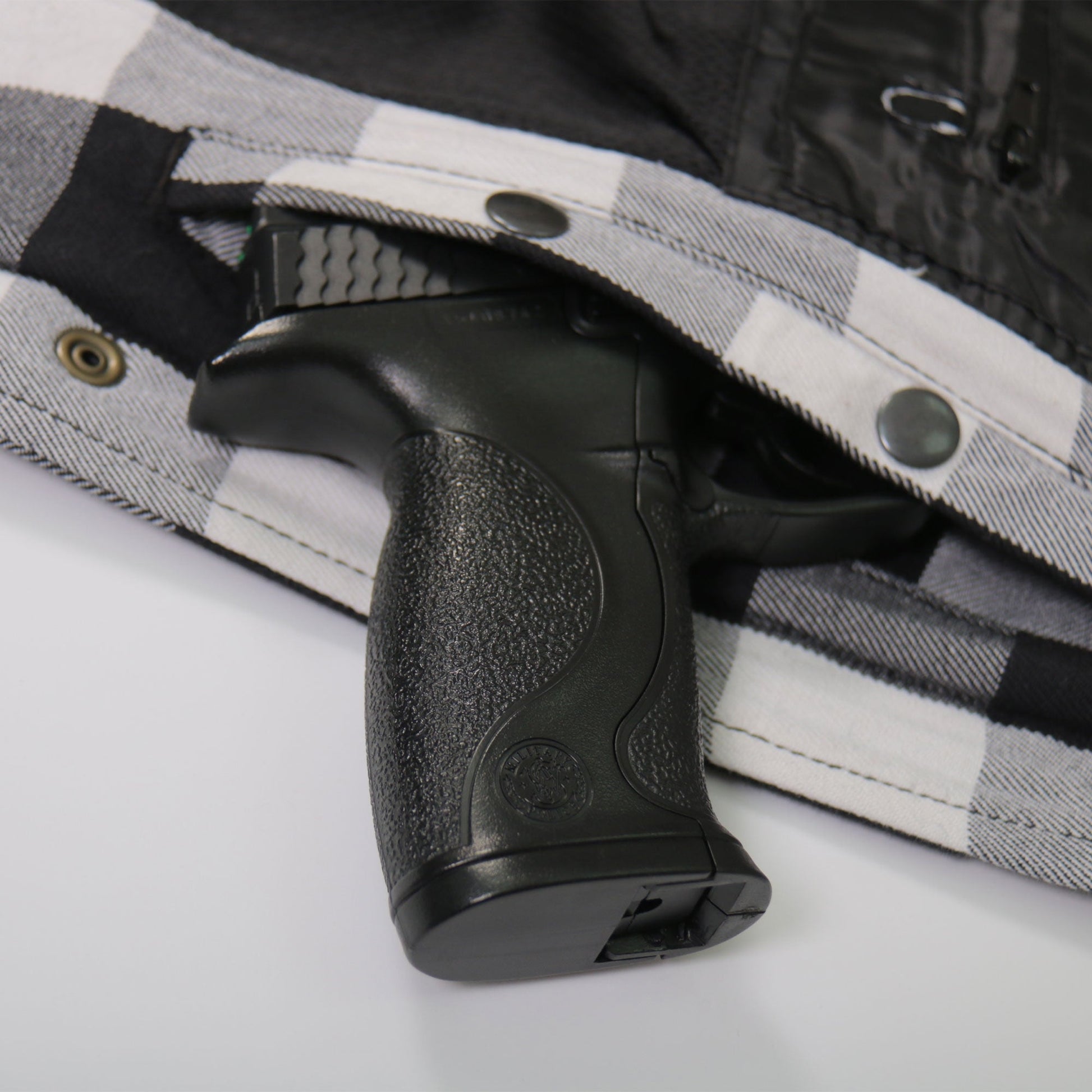 Hot Leathers JKM3005 Men's Motorcycle White and Black Armored Flannel Biker Jacket