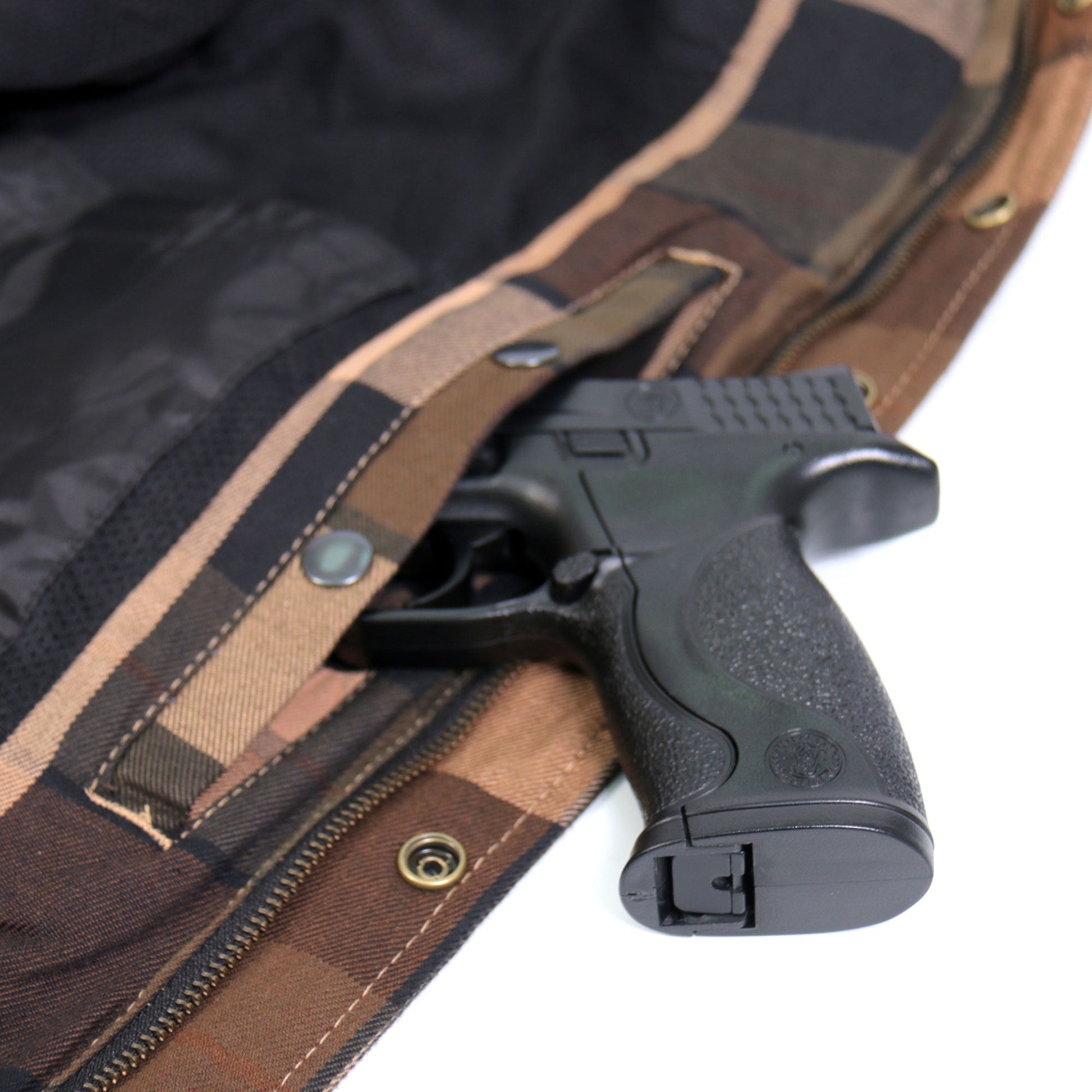 - Built in Dual Side Concealed Weapon and Ammo Pocket