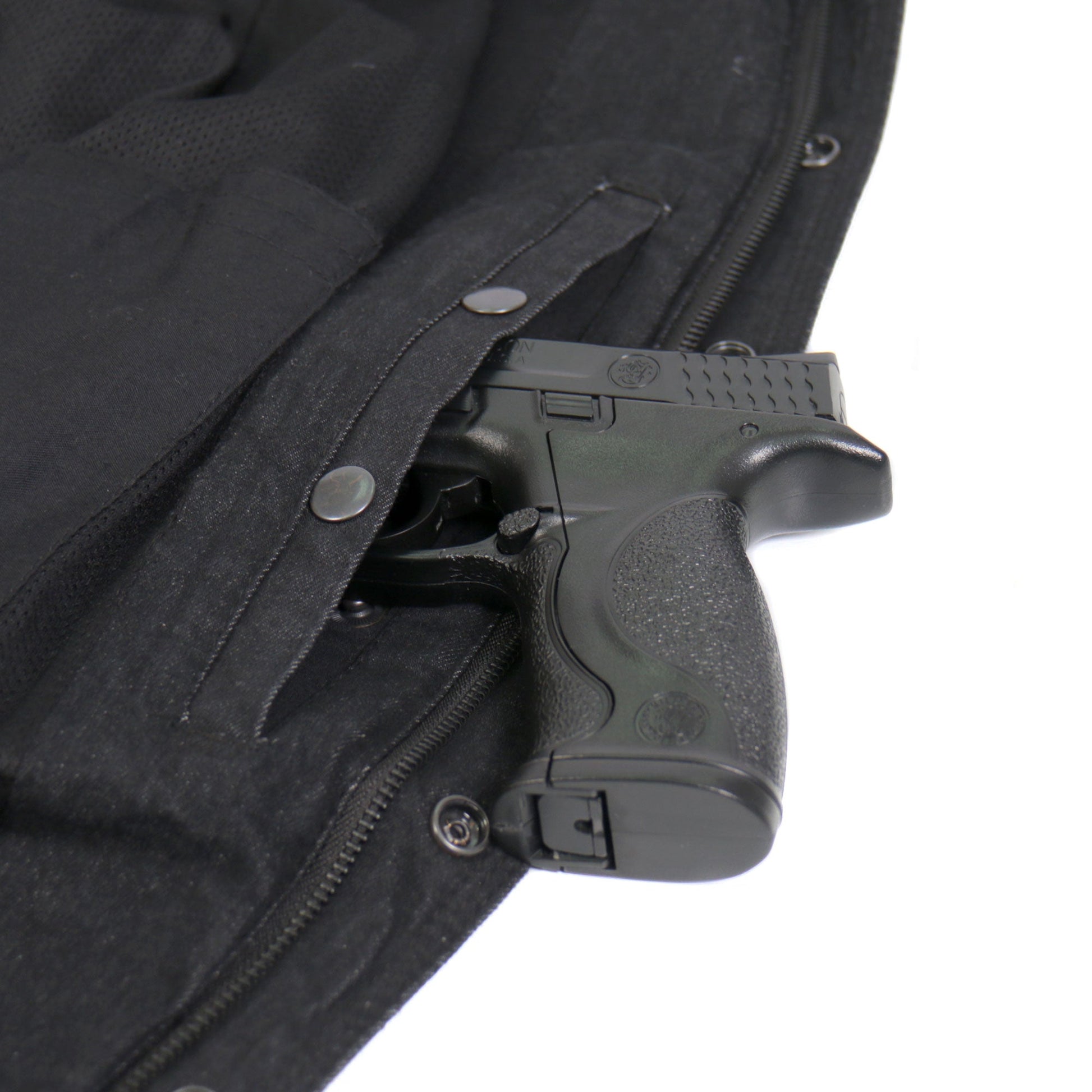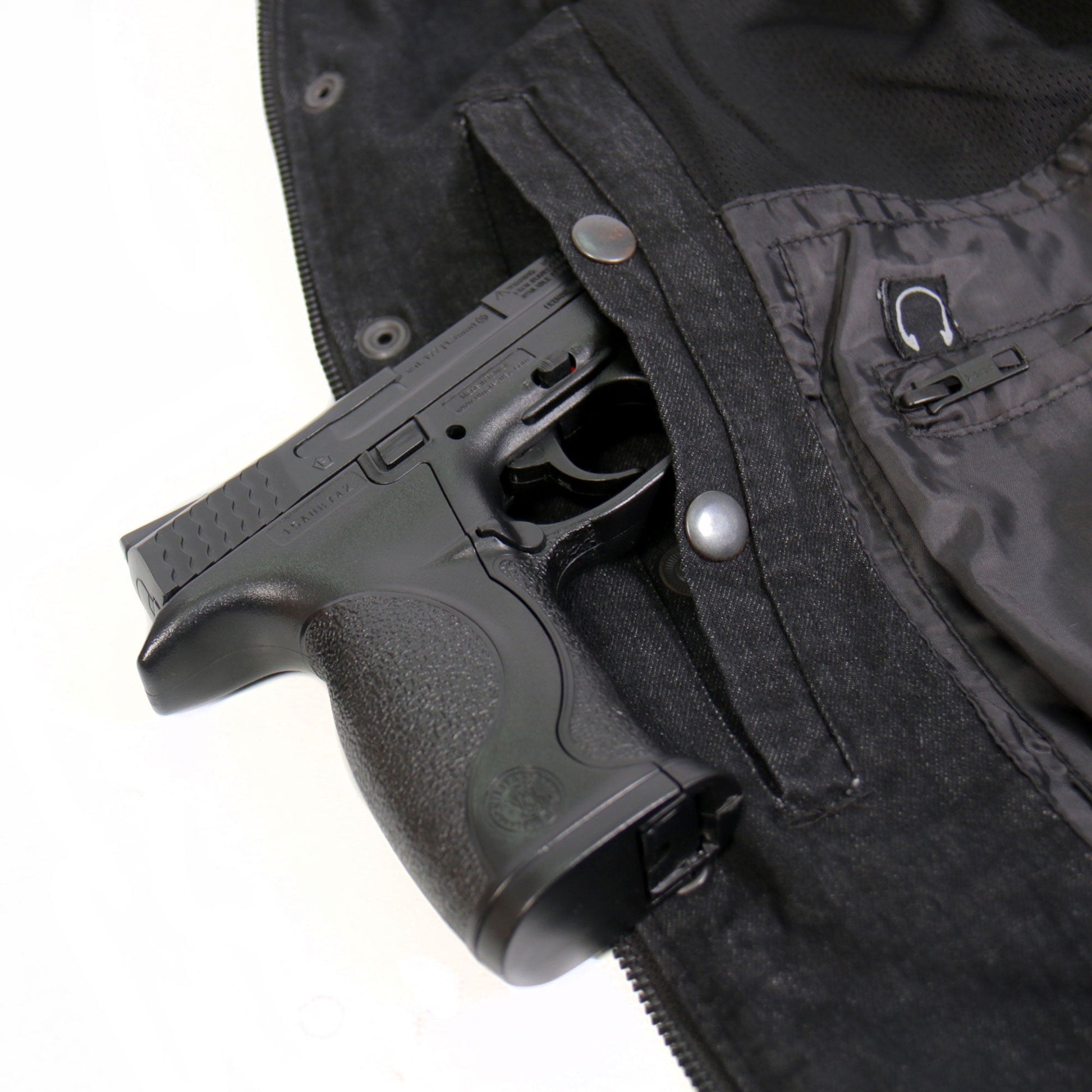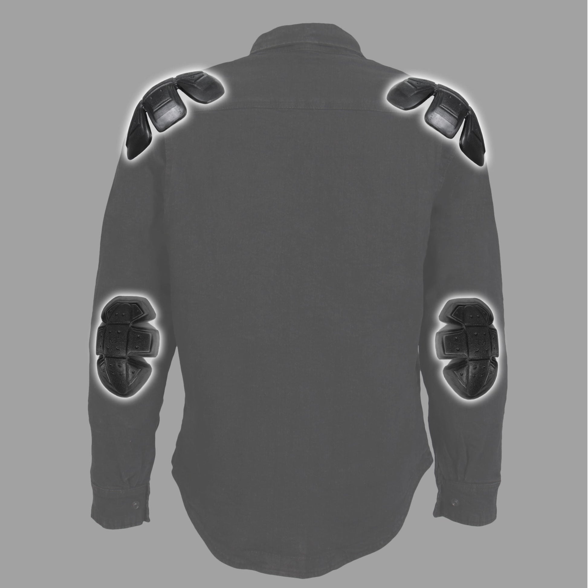 Cycle Source Magazine "Best Apparel Product" 2020 Winner. Yes ,you voted and it came out on top . This is the black version of our famous armored riding flannel line. Great features including dual gun pockets, media tech pocket , outer zipper and button flap front .