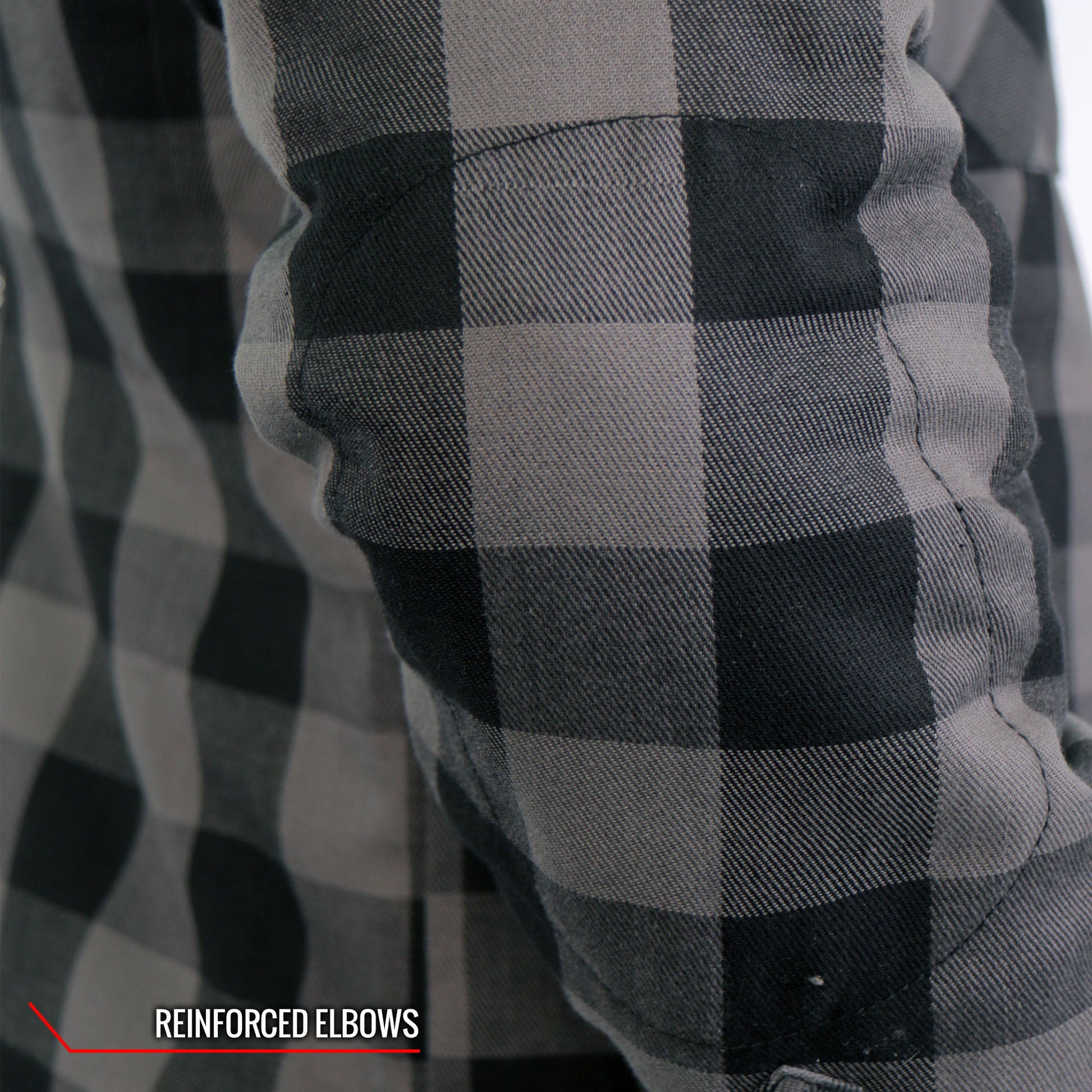 Hot Leathers JKM3203 Men's Motorcycle style Grey and Black Kevlar Reinforced Leather and Plaid Flannel Biker Shirt