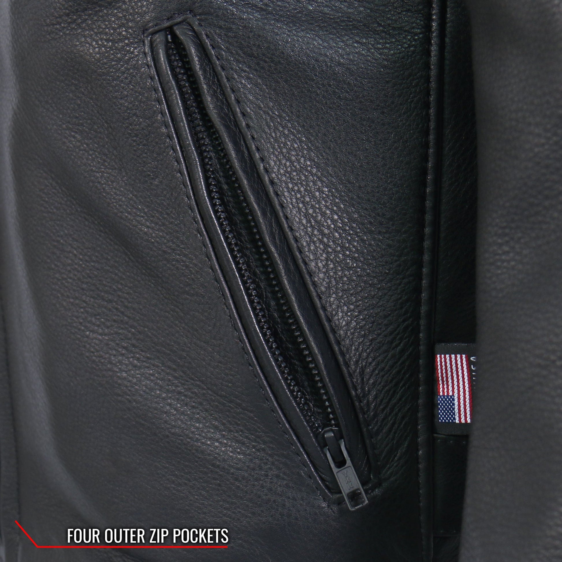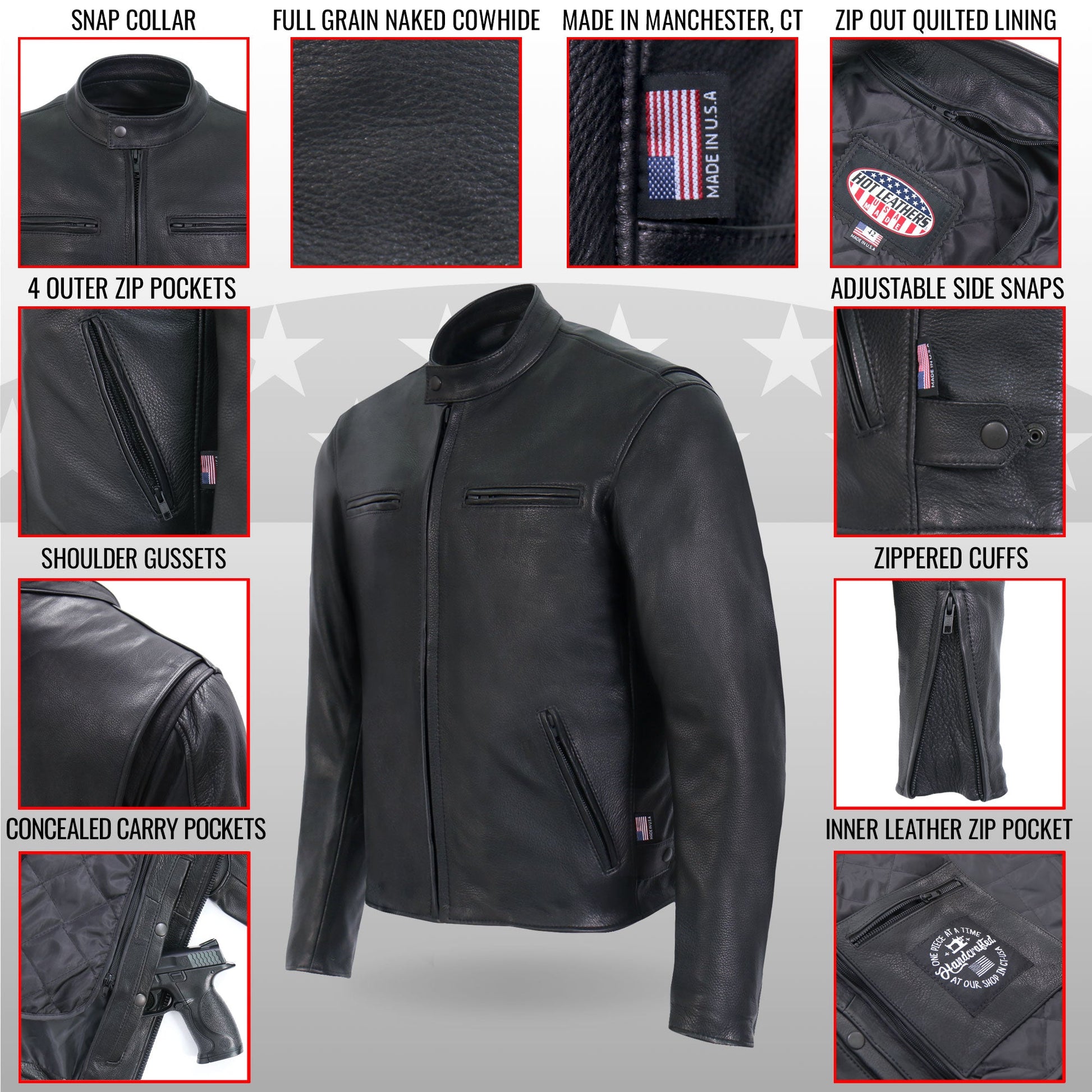 Hot Leathers JKM5001 Men's USA Made Premium Leather Motorcycle Biker Racer Jacket