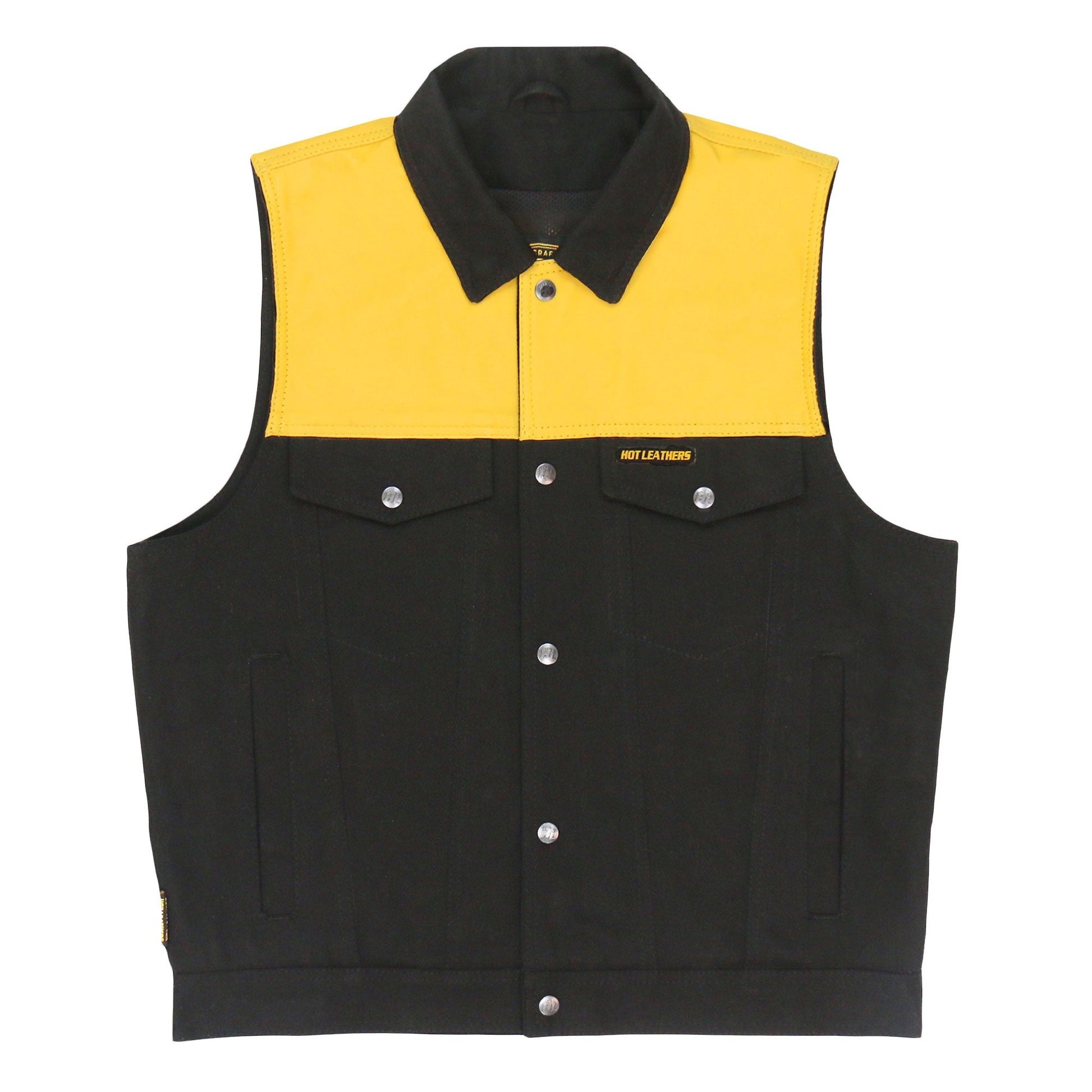 Hot Leathers Men’s Black and Yellow Denim Conceal Carry Vest VSM6104