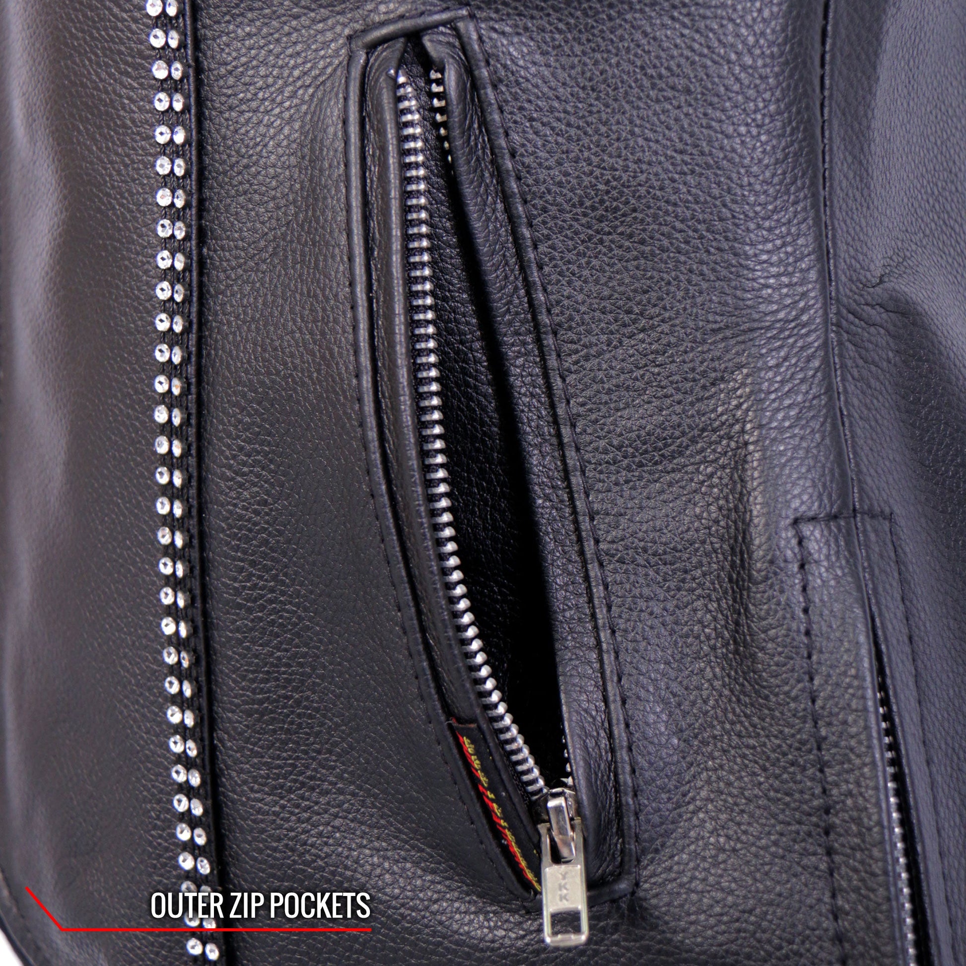 Hot Leathers VSL1016 Ladies Biker 'Rhinestone' Black Leather Motorcycle Vest