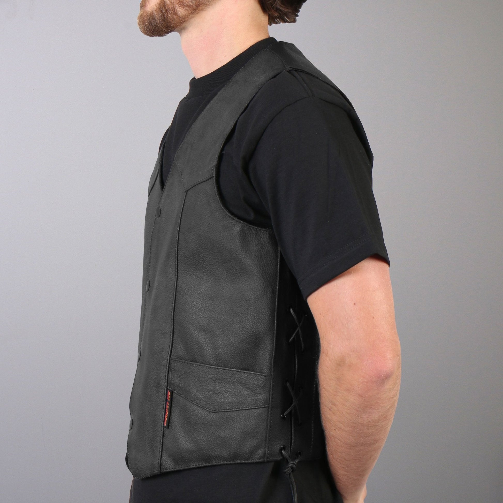 Hot Leathers VSM1015 Men's Black Heavyweight Motorcycle style Leather Biker Vest with Side Laces