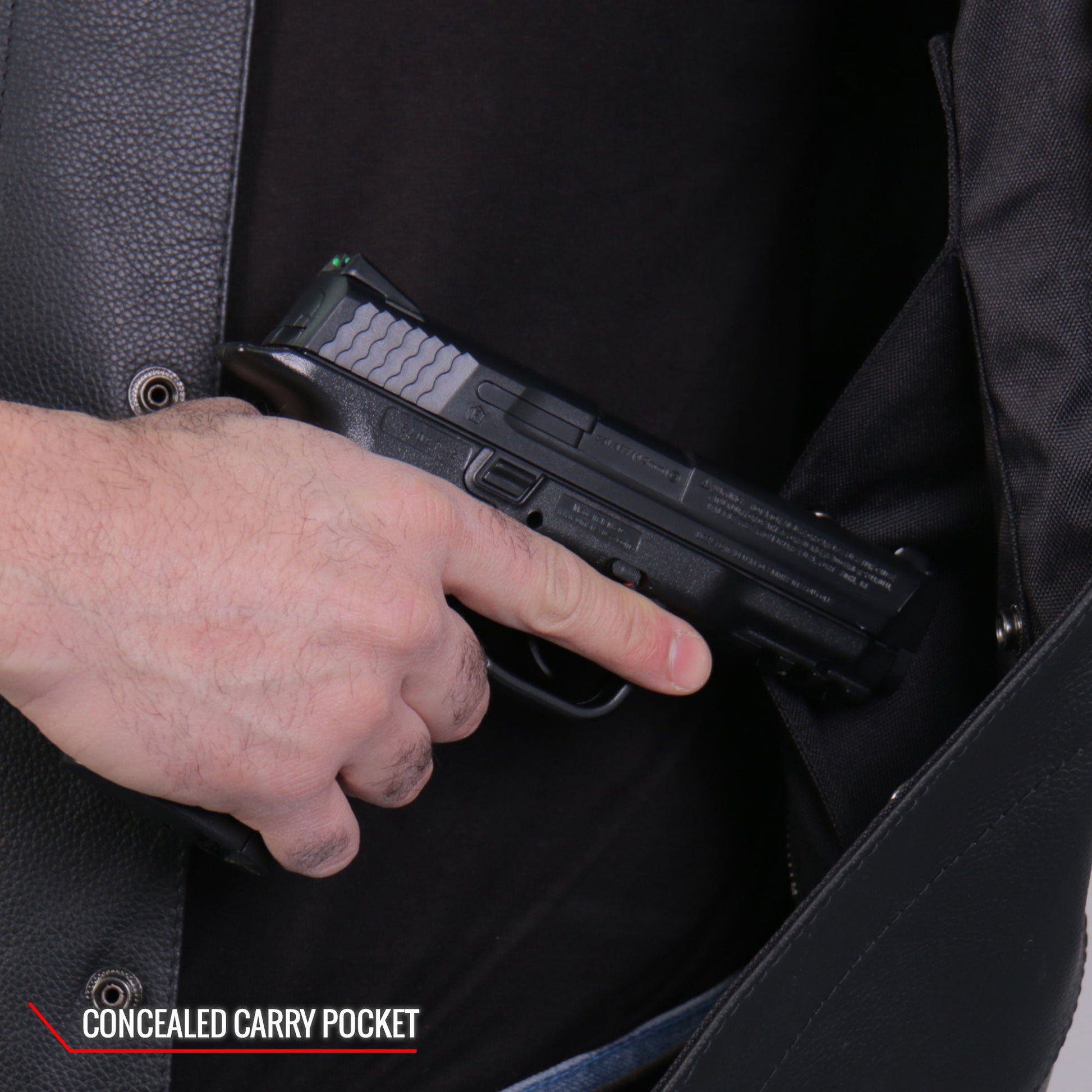 Hot Leathers VSM2002 Men's Black 'Back Off Finger' Conceal and Carry Leather Vest