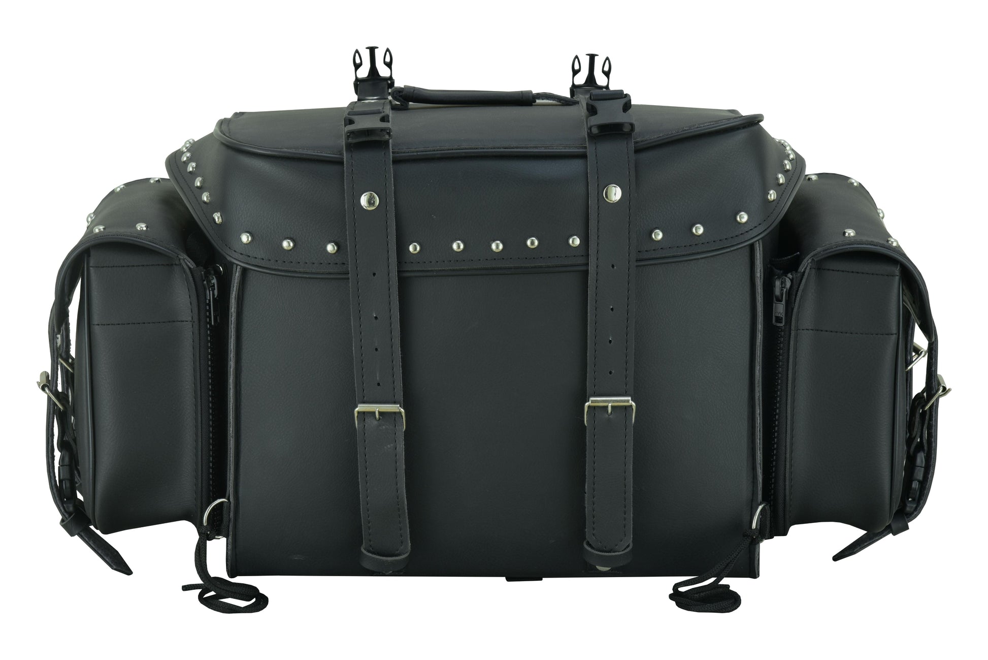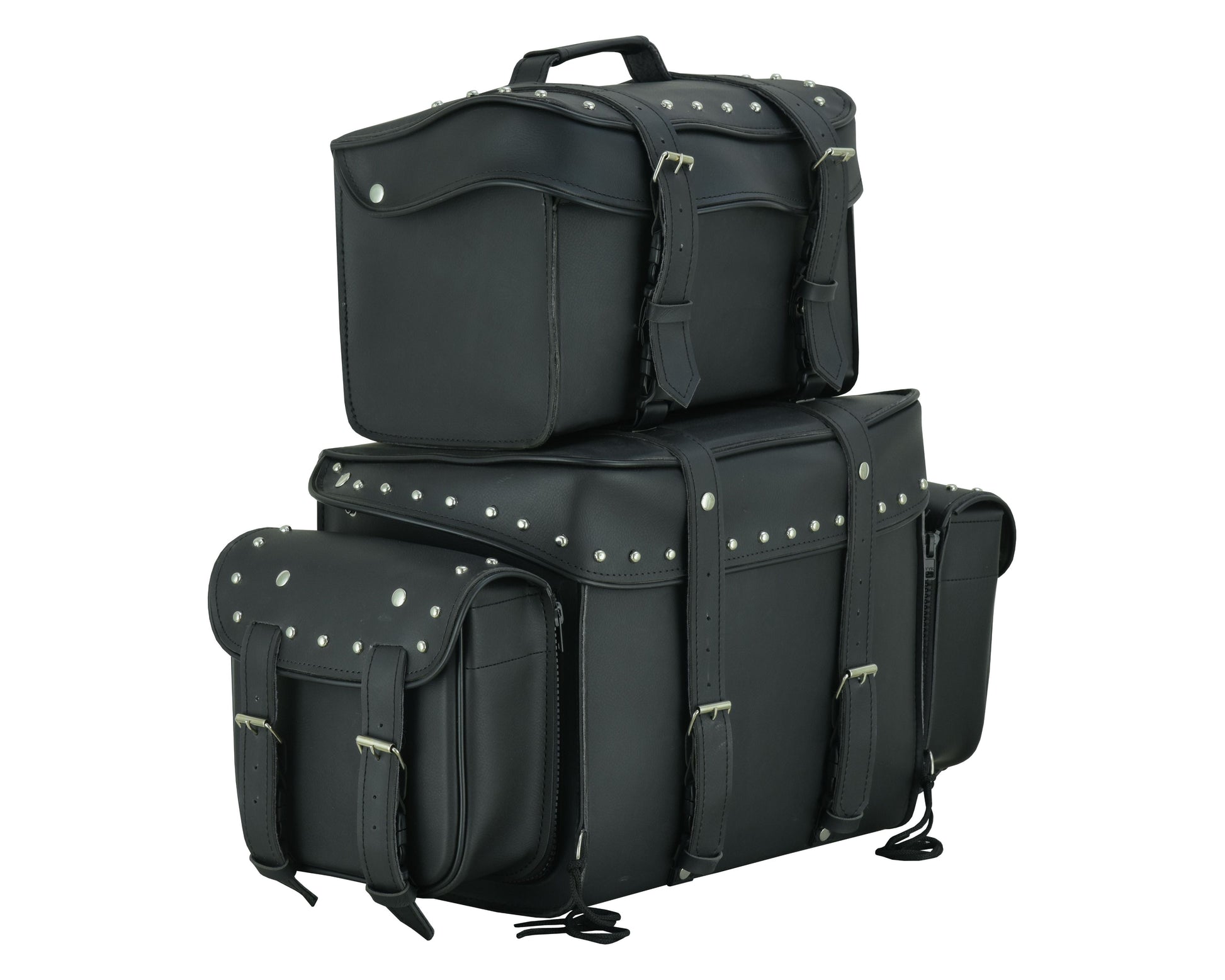 Leather Black PVC Large 4 Piece Motorcycle Touring Tail Bag wi