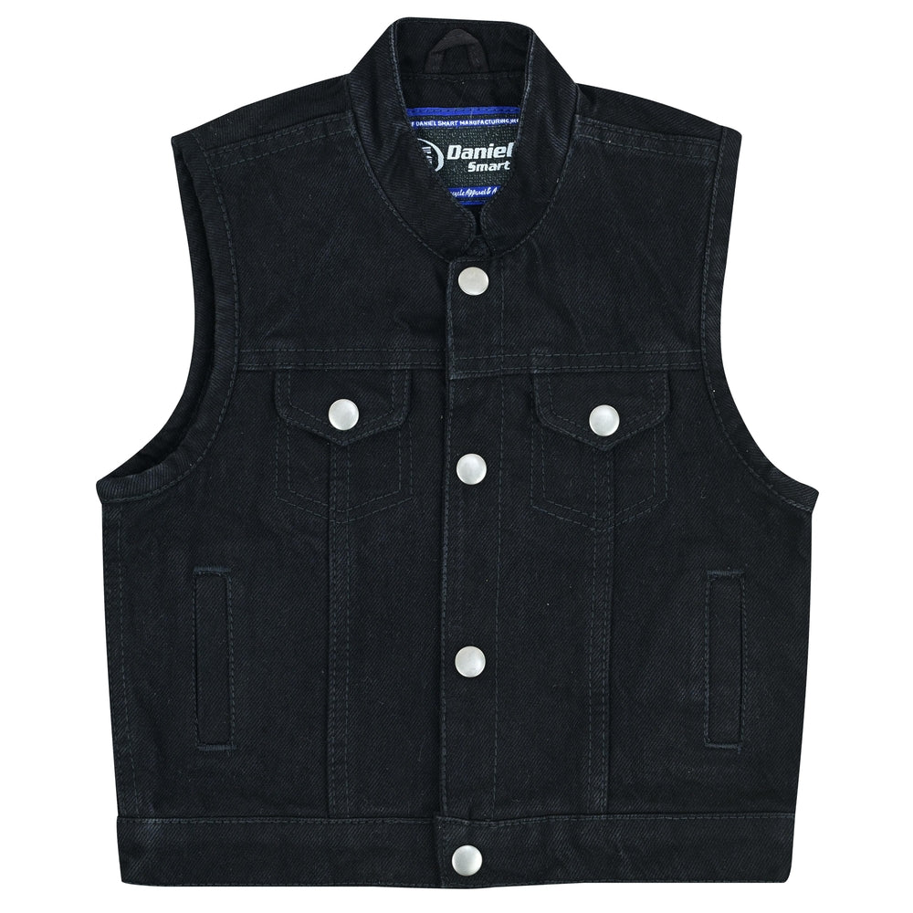 Enhance your kid's everyday style with this kid's premium denim vest, seamlessly combining durability and fashion. Its versatile design, featuring gunmetal snaps and ample storage pockets, ensures convenience and timeless style for any occasion.
