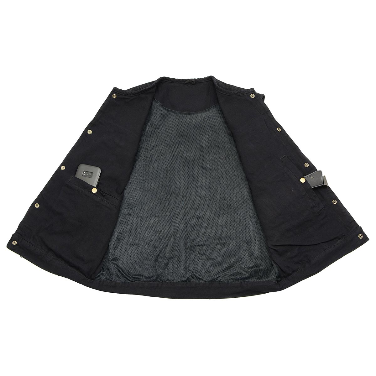 M-Boss Apparel BOS13521 Men's Black Denim Club Style Motorcycle Rider Vest with Conceal/Carry Pockets
