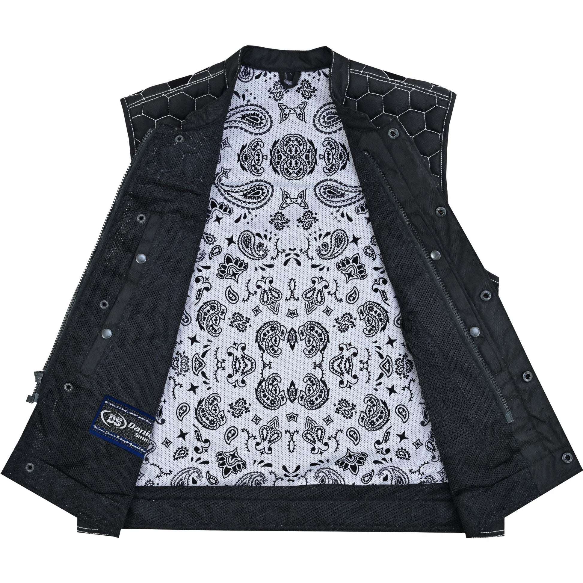 Men's Black Mesh Textile Vest with White Paisley Liner