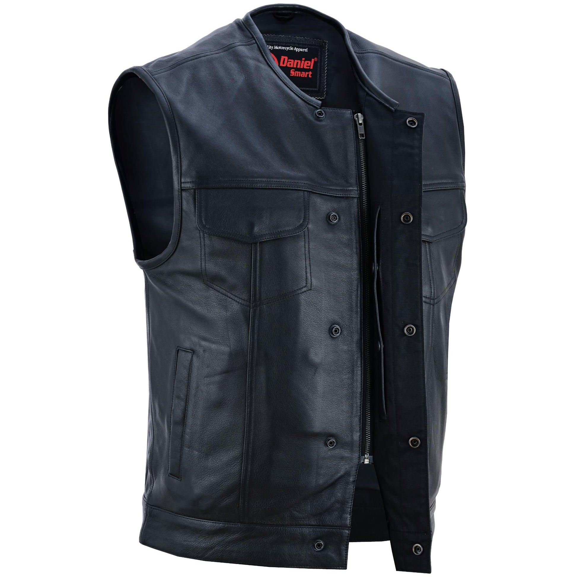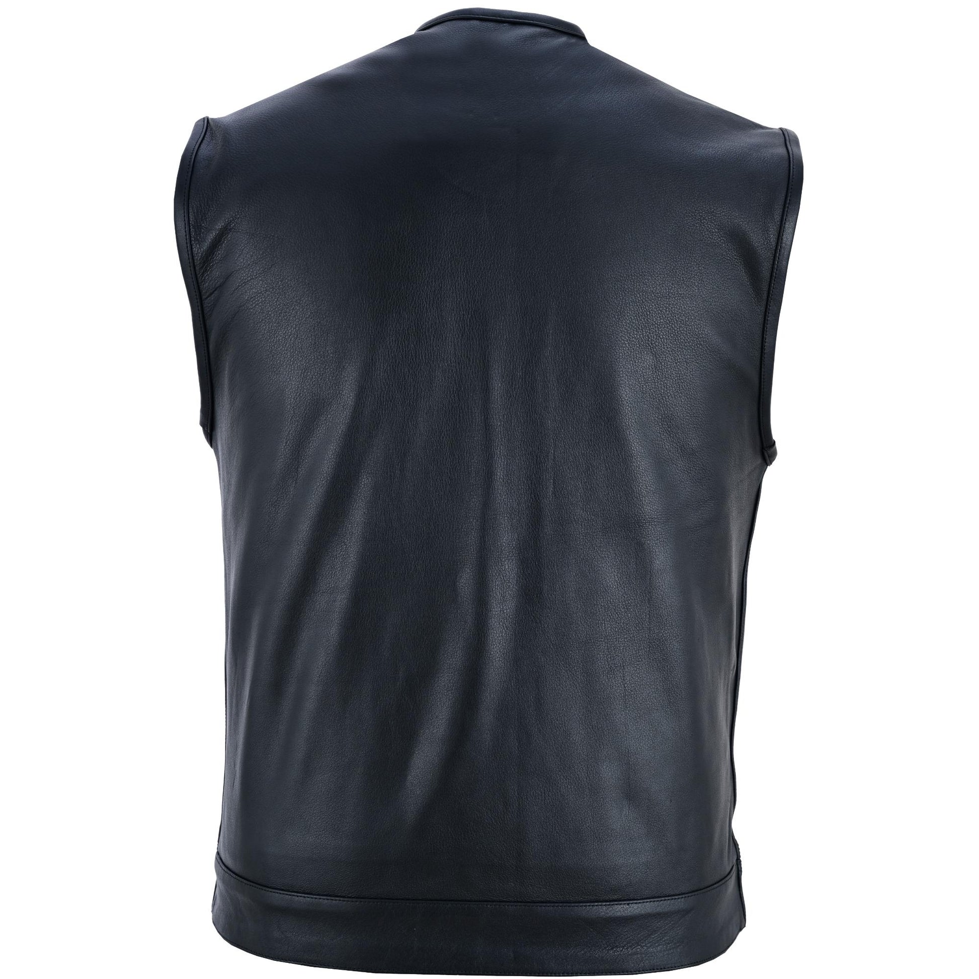 Men's Titan Black Leather Vest - Milled Cowhide, Hidden Zipper