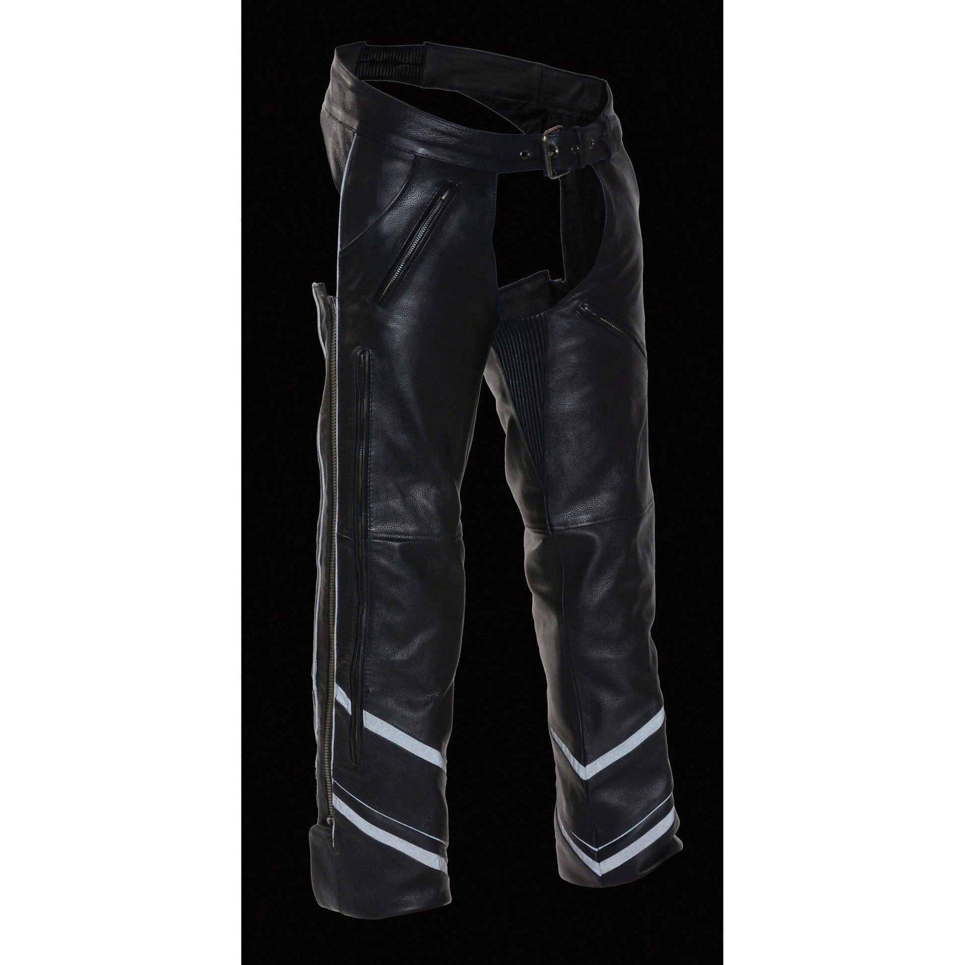 Milwaukee Leather ML1144 Men's Black Premium Leather Vented Motorcycle Rider Chaps w/ Reflective Piping