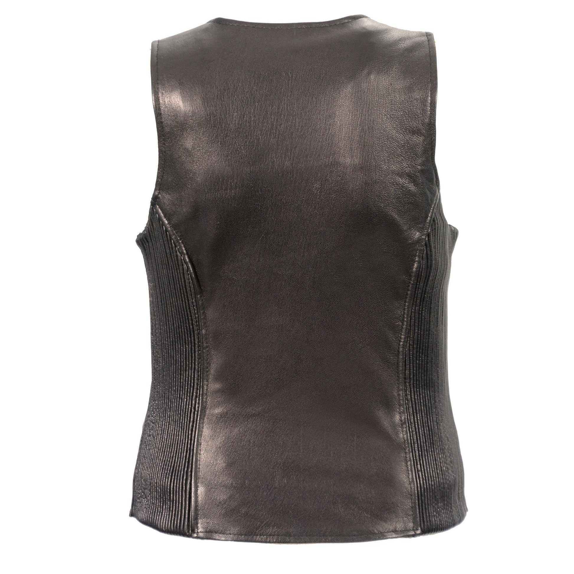 Milwaukee Leather MLL4555 Women's Black Premium Leather Zipper Closure Motorcycle Rider Vest w/ Stretch Side Panel