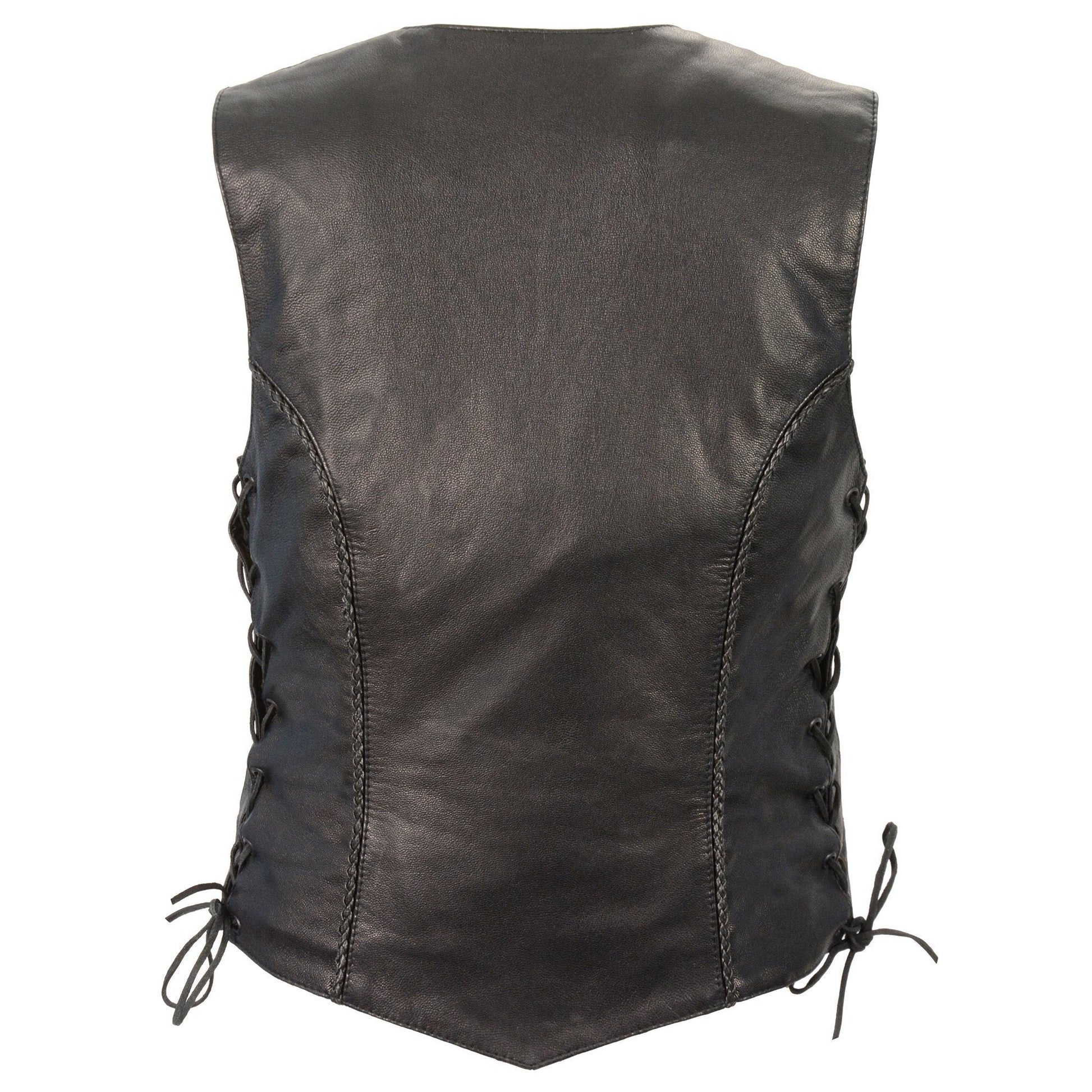 Milwaukee Leather MLL4560 Women's Black Naked Leather Classic Braided Side Lace Deep V-Neck Motorcycle Rider Vest