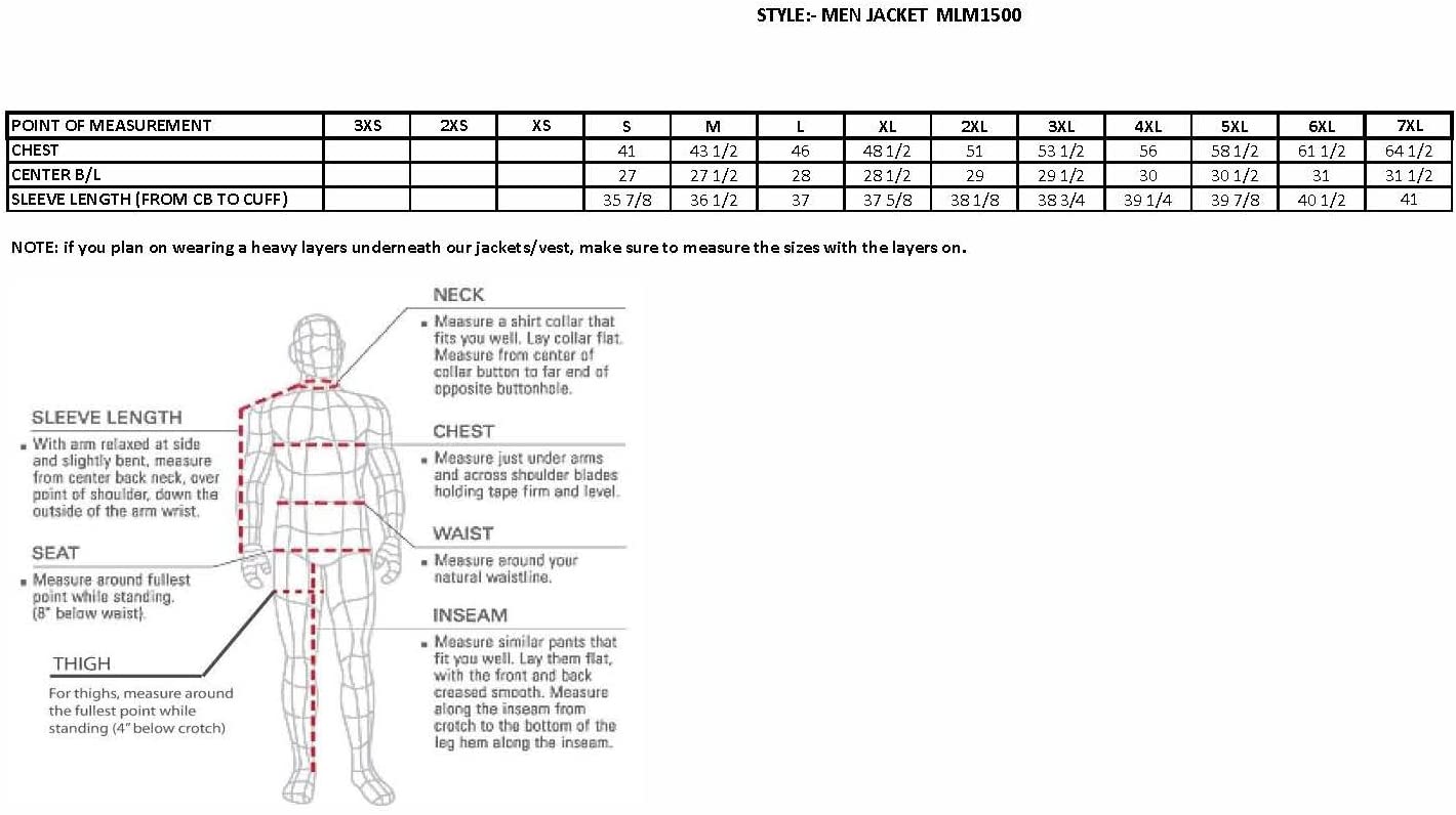 - Full Sleeve Zip Out Thermal Liner
