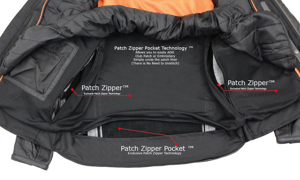 - Patented Patch Access Technology: Inside ‘Patch Access’ Zipper Openings Allow Easier Patches or Embroidery Sewing without Having to Open the Jacket