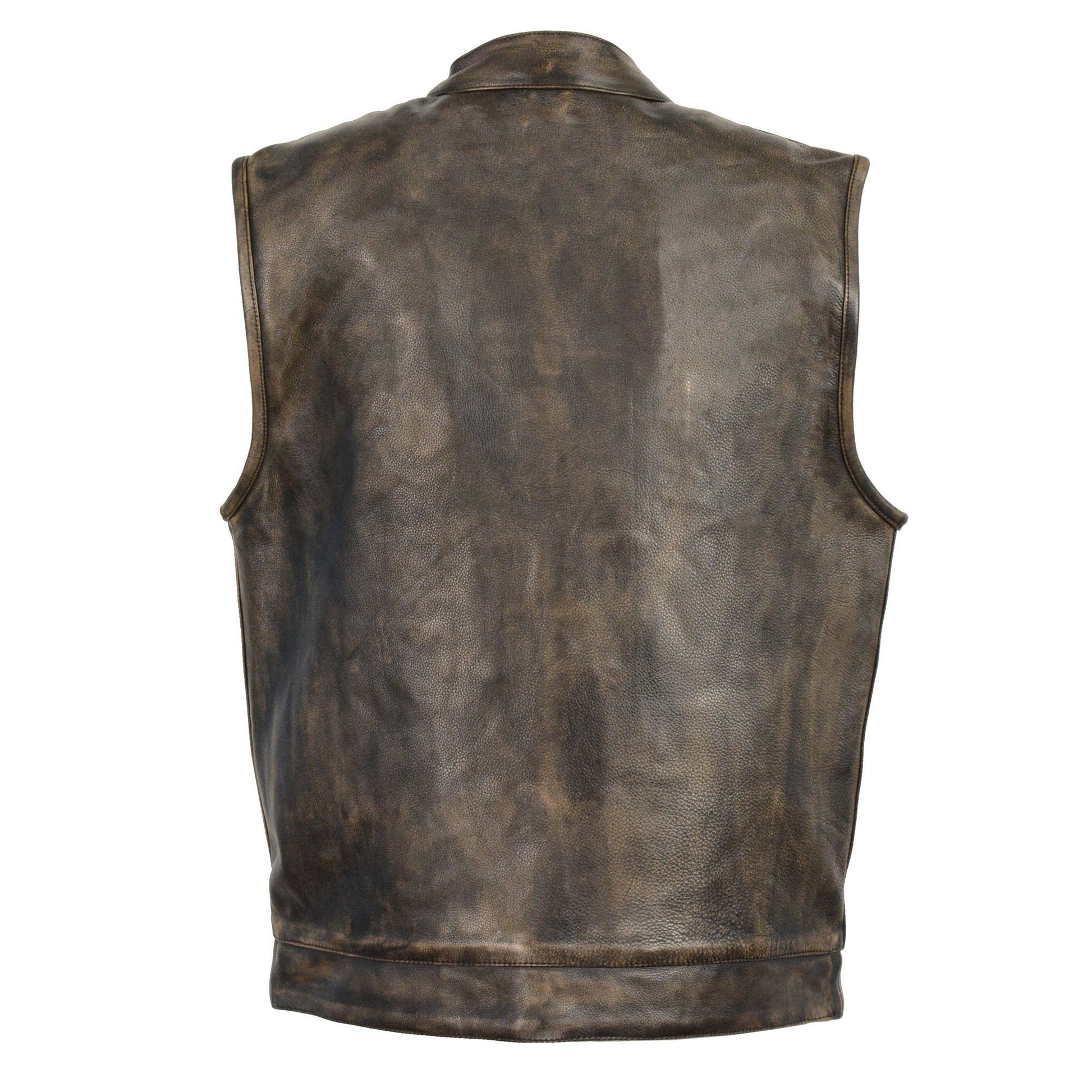 Milwaukee Leather MLM3510 Men's Distressed Brown ‘Dual Closure’ Open Neck Club Motorcycle Leather Vest