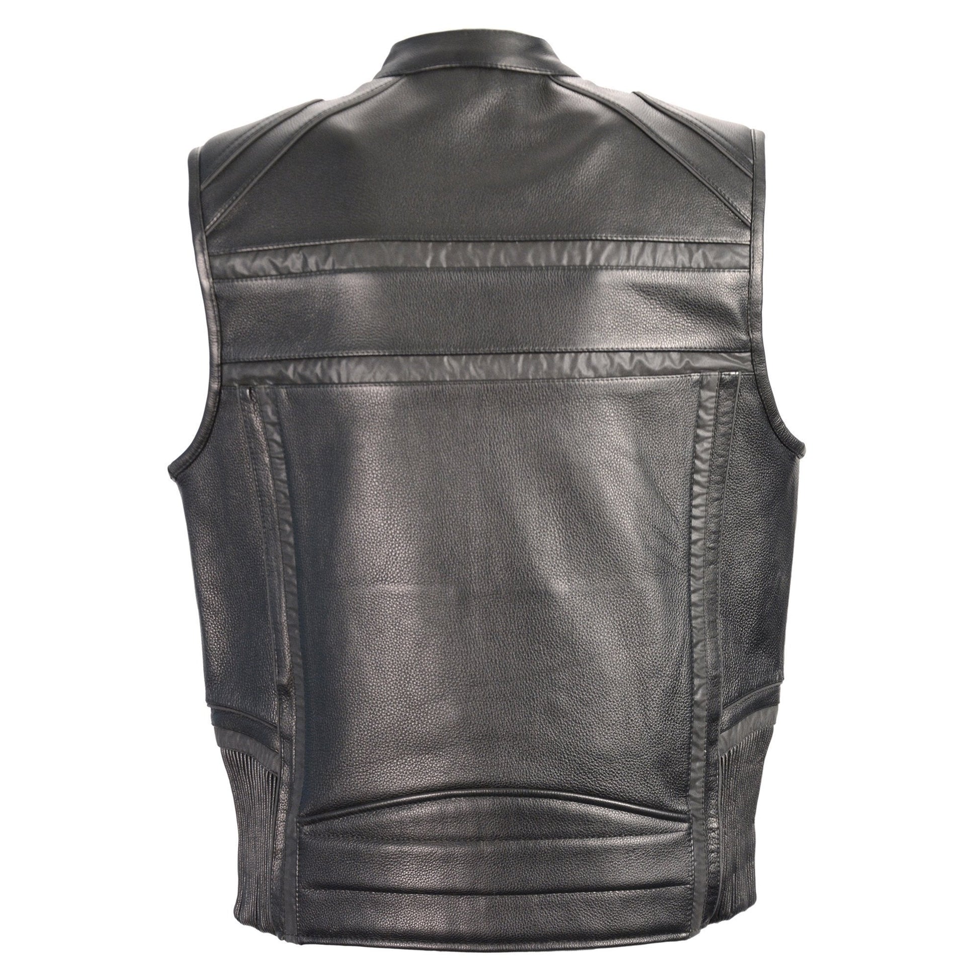 Milwaukee Leather MLM3560 Men's Black Leather Vest - Reflective Piping Elasticized Waist Open Neck Motorcycle Vest