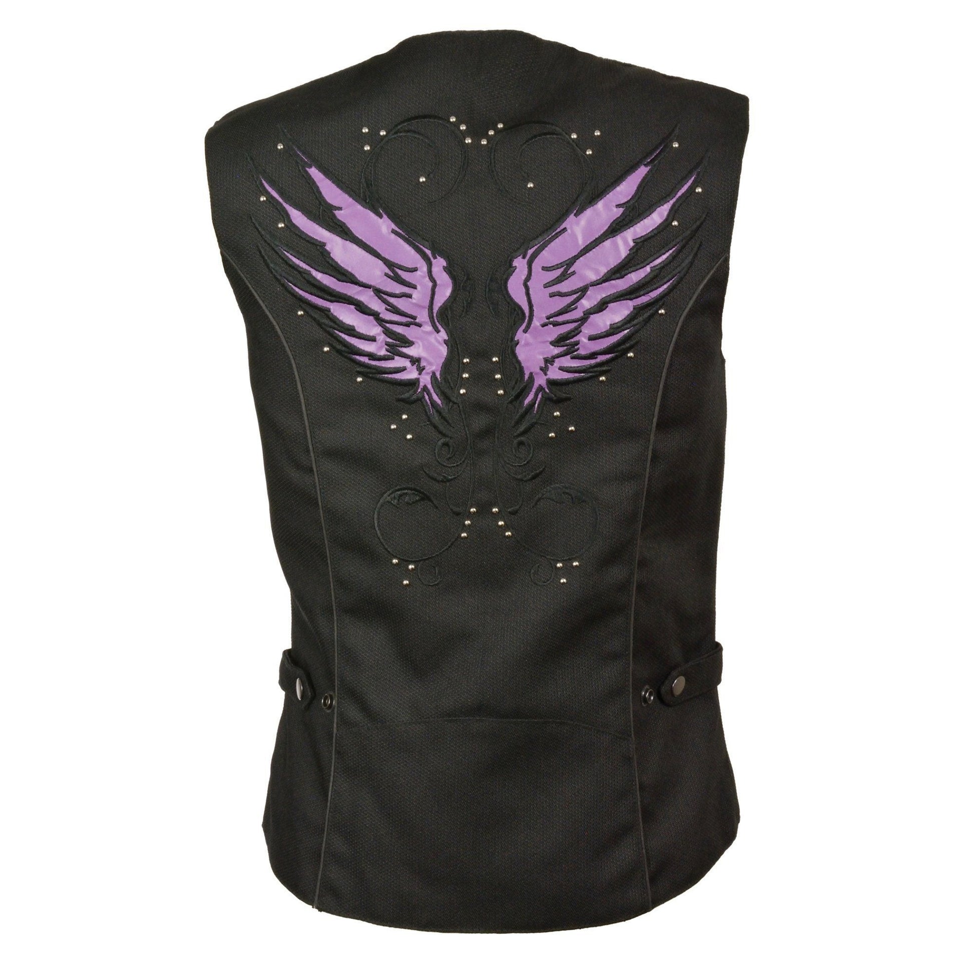 Milwaukee Leather MPL1955 Ladies 'Winged Embroidery' Black and Purple Textile Vest