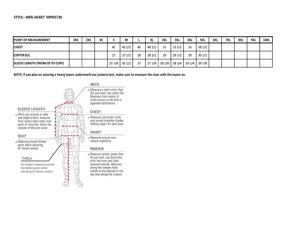 - Full Sleeve Zip Out Liner