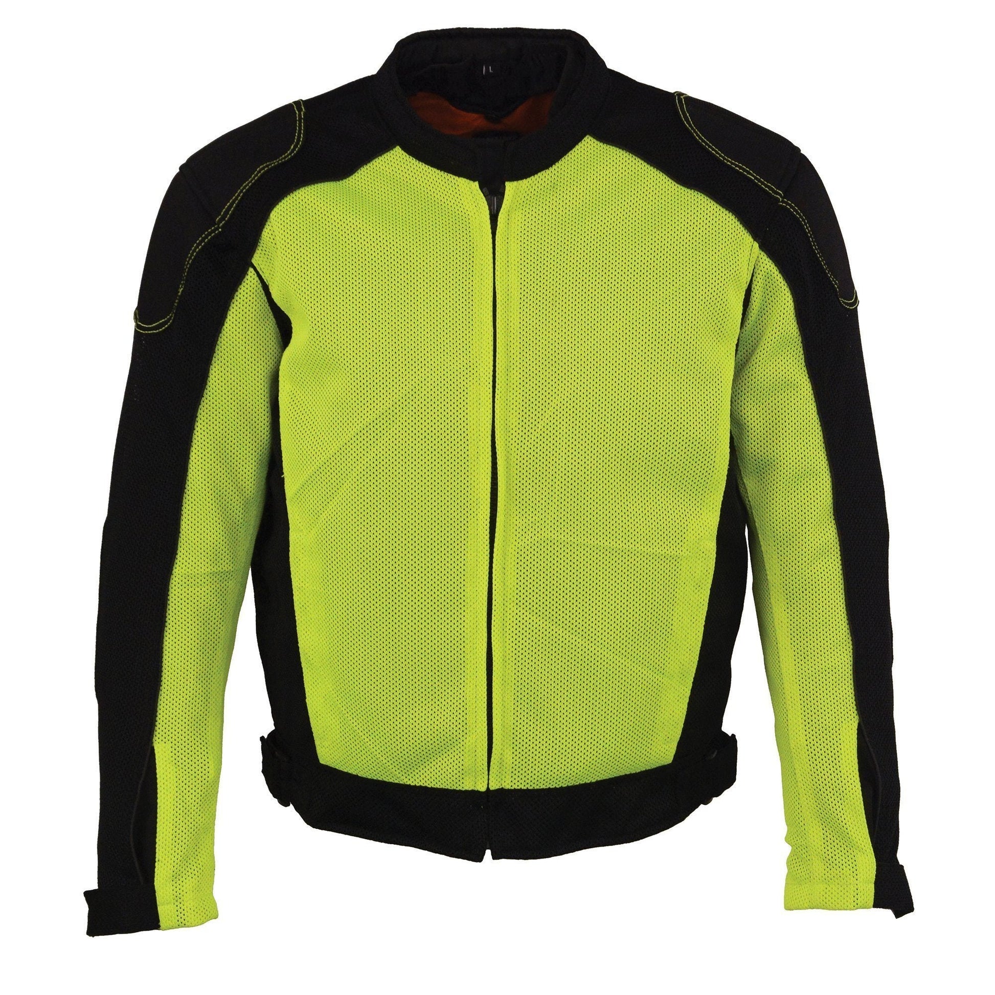 Milwaukee Leather MPM1790 Men's Black and Neon Green Hi Vis Mesh Racer Armored Jacket with Removable Rain Jacket