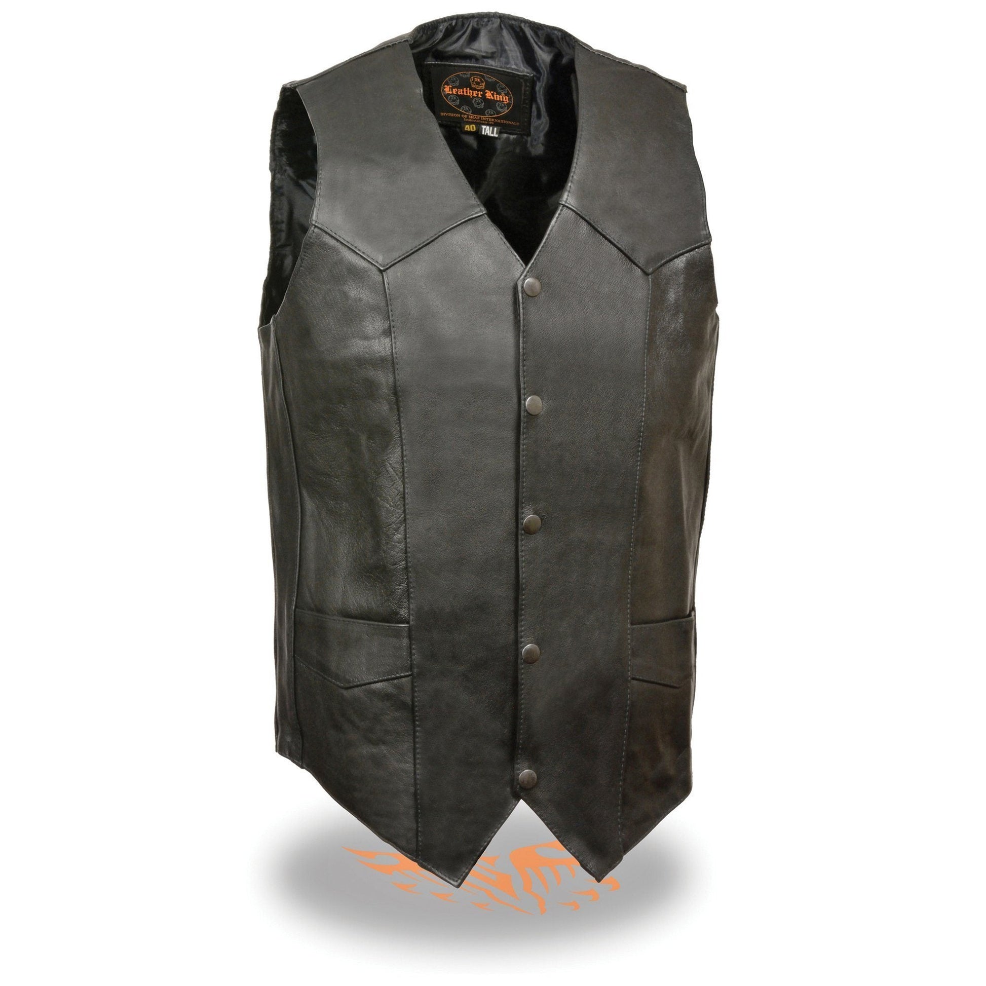 Milwaukee Leather SH1310Tall Men's Black Leather Classic V-Neck Motorcycle Rider Vest w/ Snap Button Closure