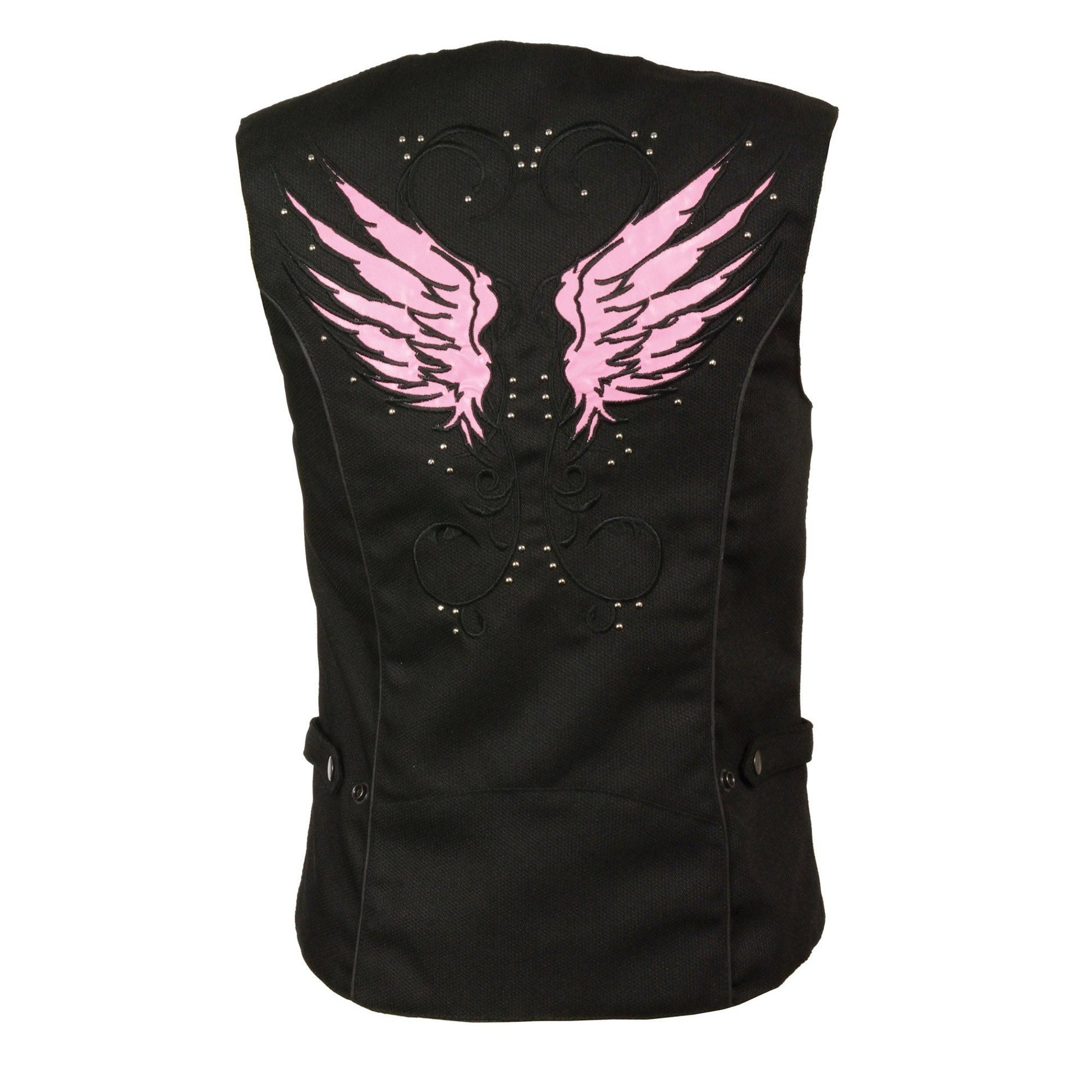 Milwaukee Leather SH1955 Ladies Black and Pink Textile Vest with Wing Embroidery