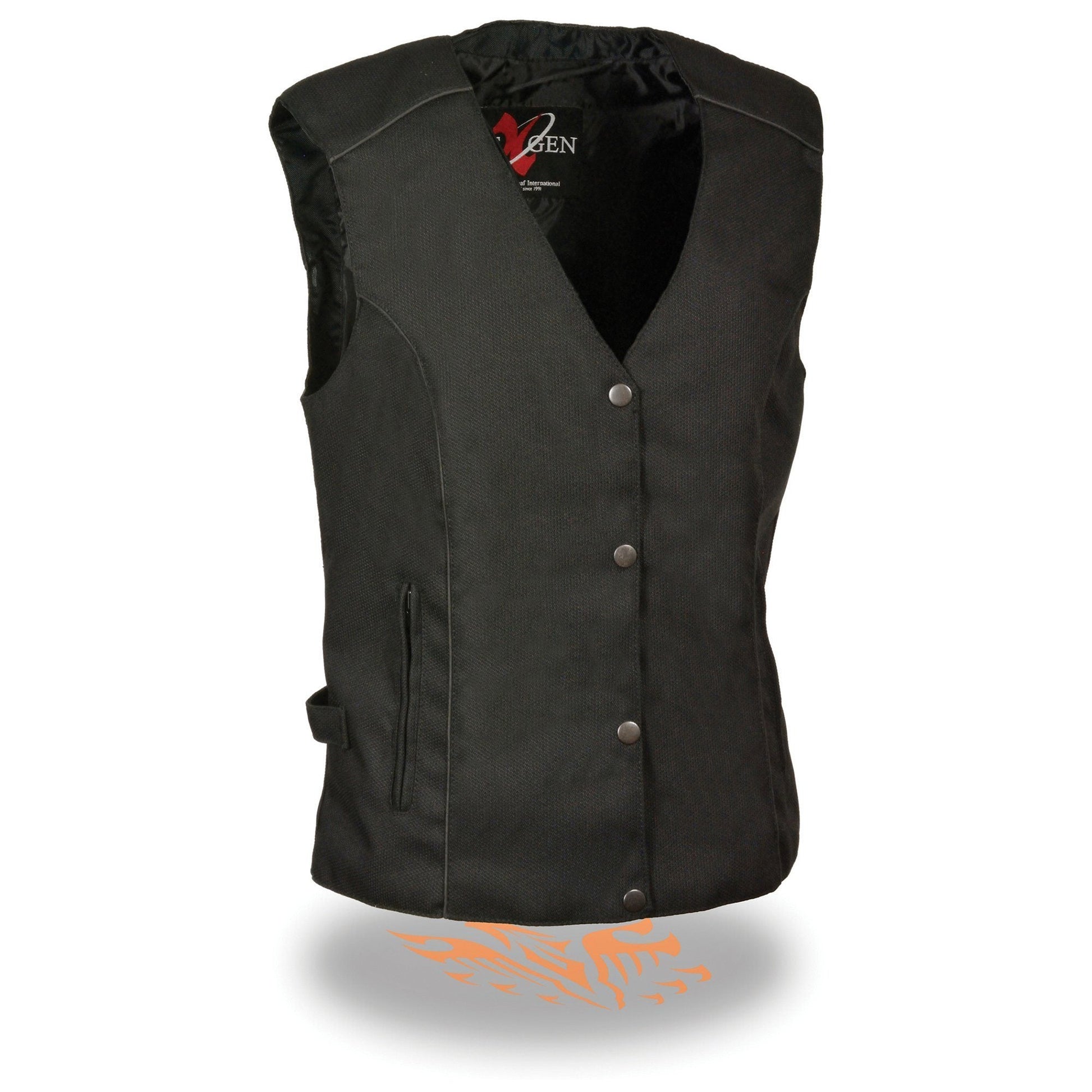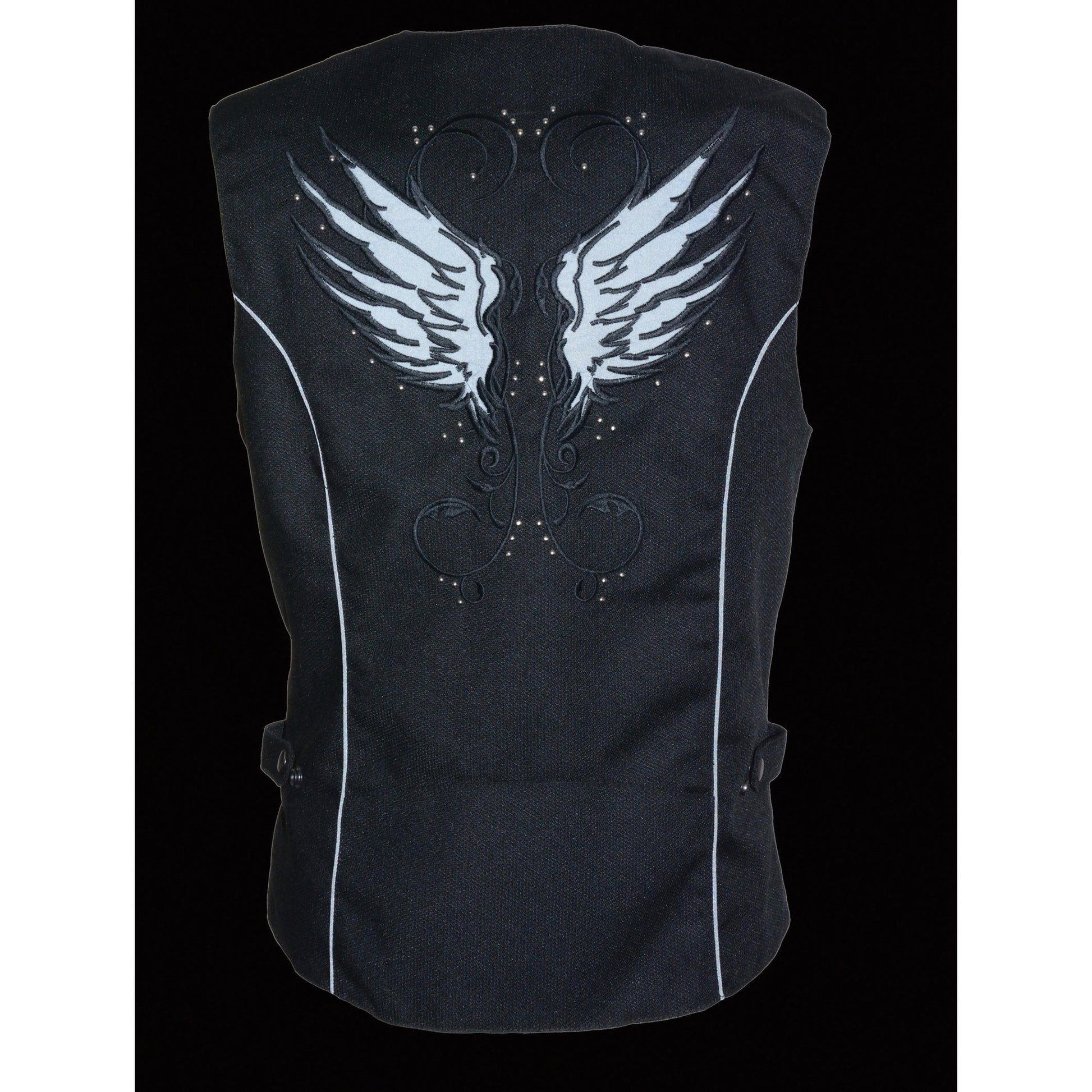 Milwaukee Leather SH1955 Ladies Black Textile Vest with Wing Embroidery