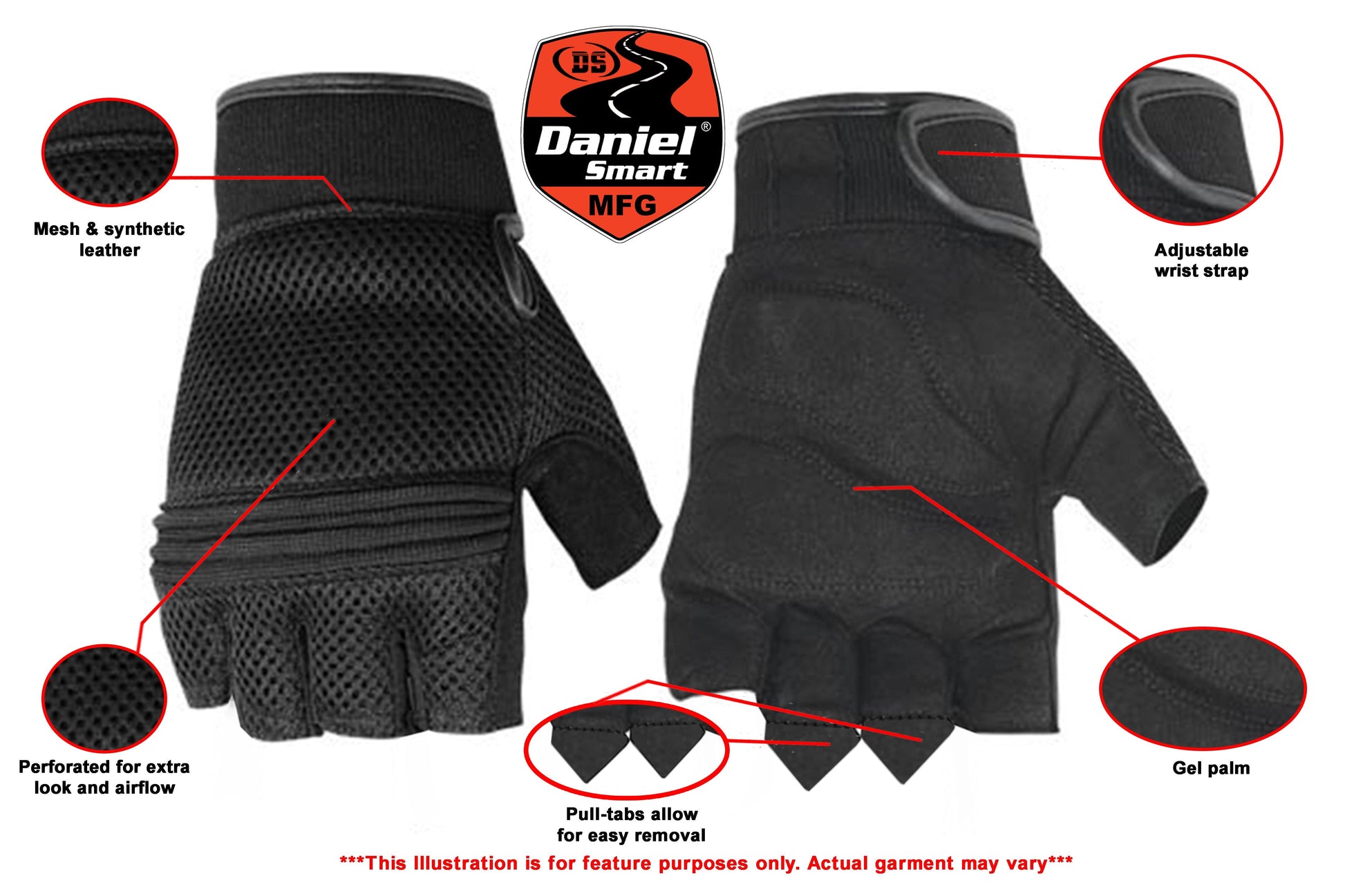 Mesh & synthetic leather fingerless glove with gel palm, constructed for comfort and maximum air flow.