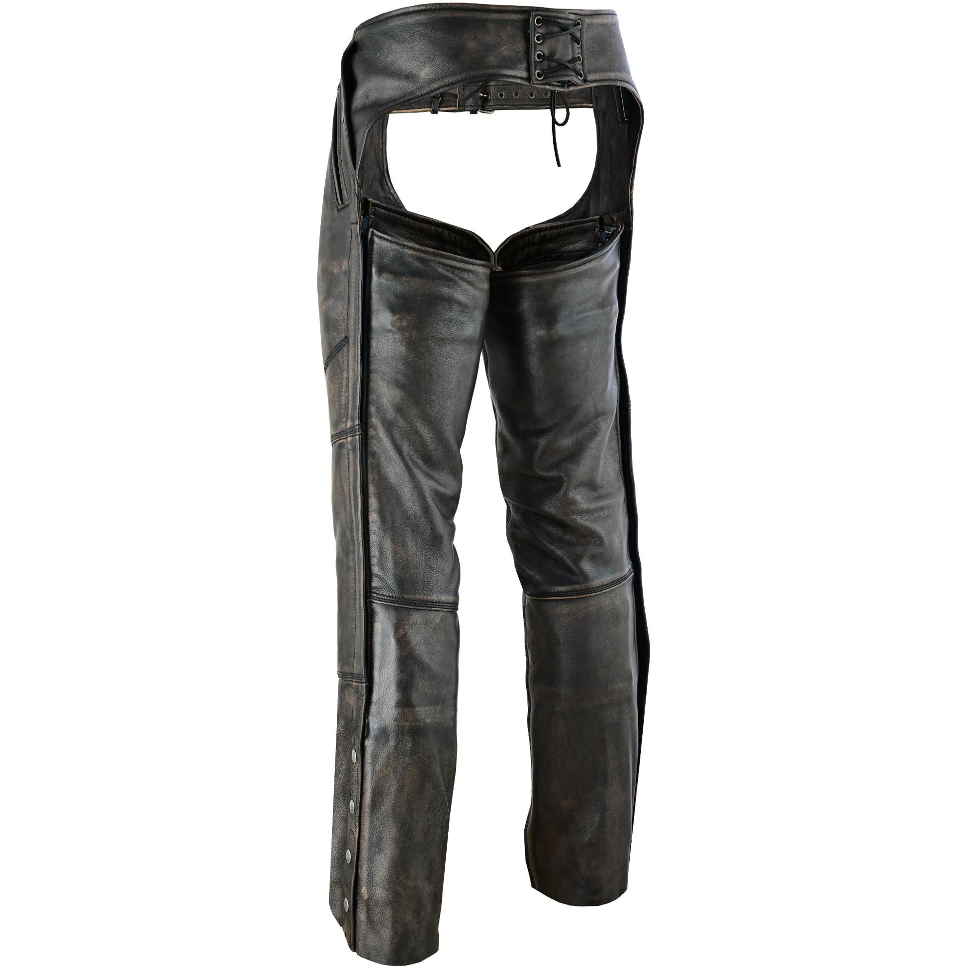Renegade Classics's brown insulated chaps are a symbol of biker flair and vital gear for riders. These are protective and stretchy on the inner thigh area and are designed to save the rider from injury, road debris, and weather elements while also giving out a stylish and iconic look.